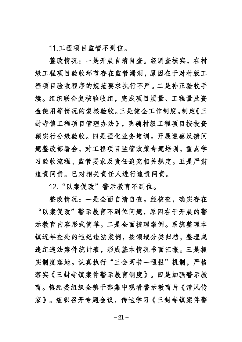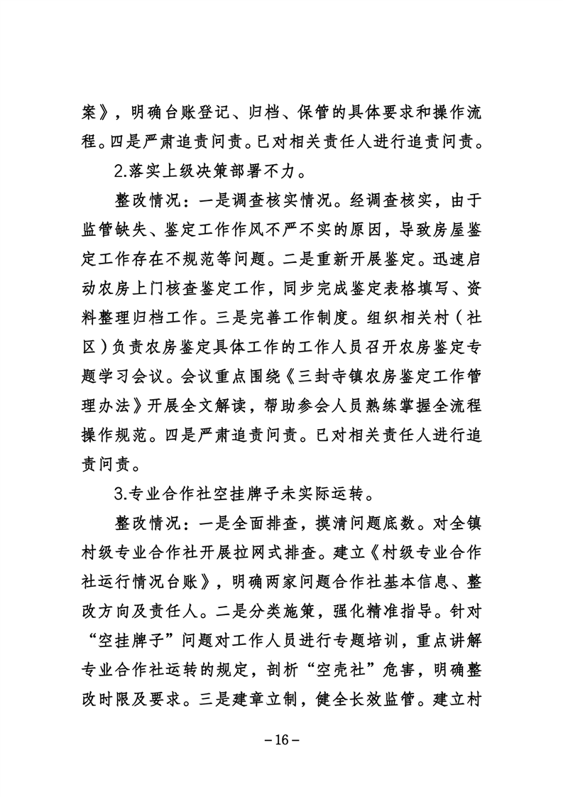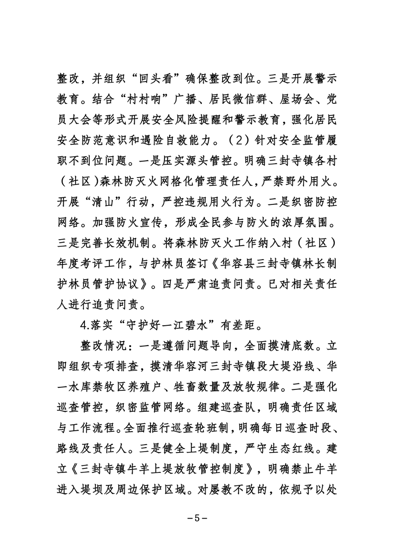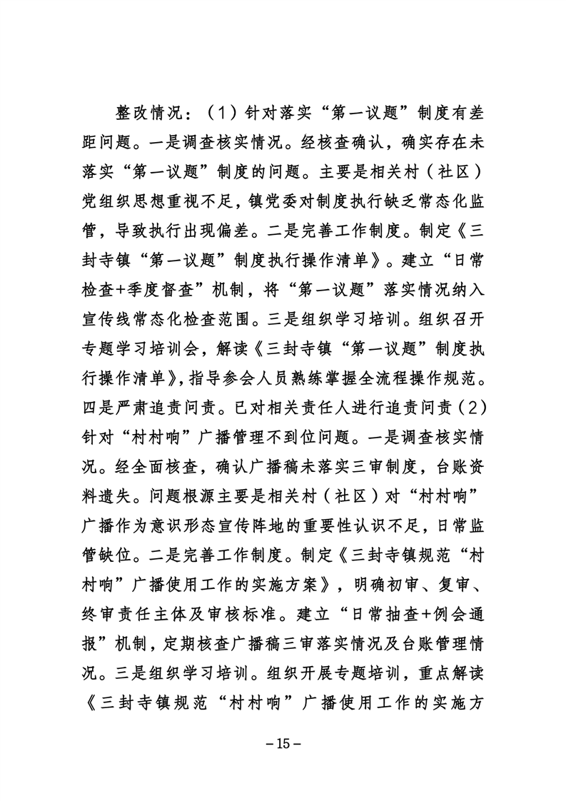 中共华容县三封寺镇委员会关于巡察整改进展情况的通报