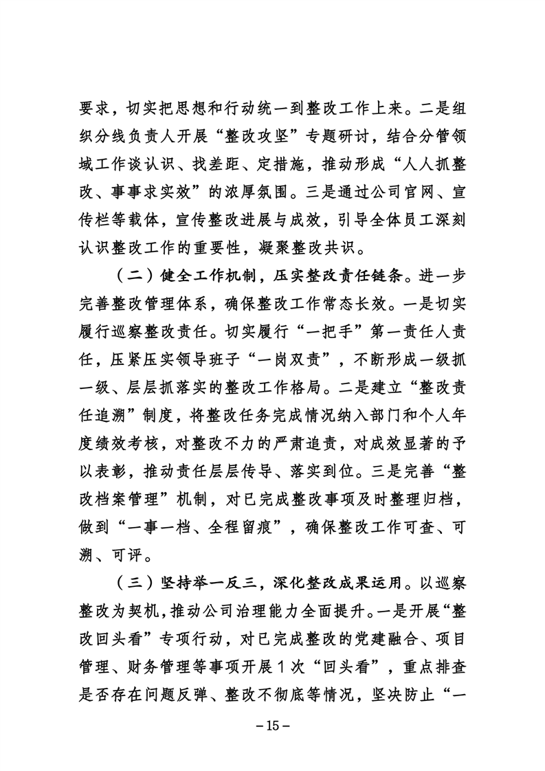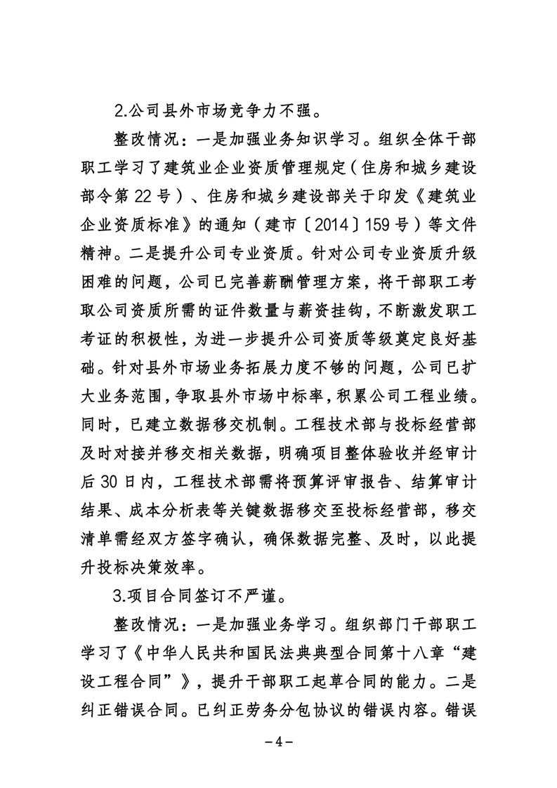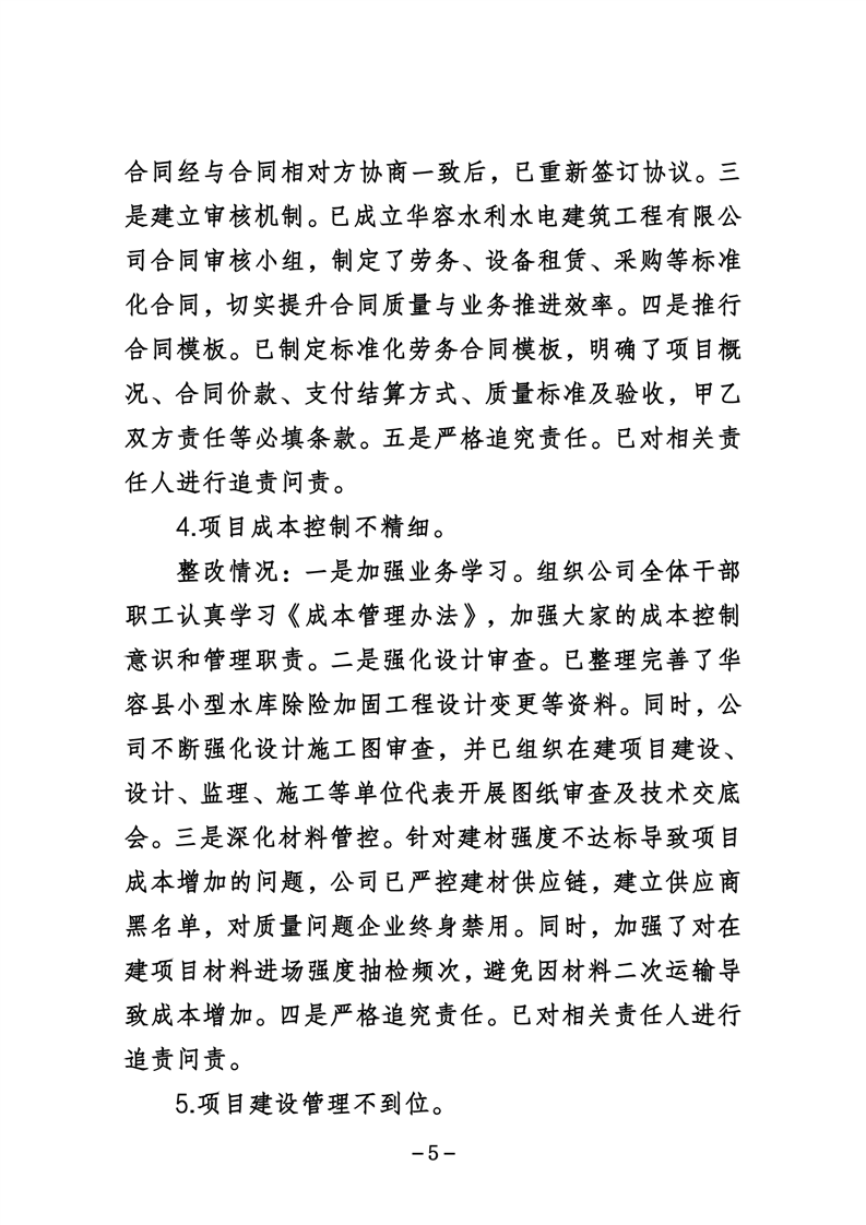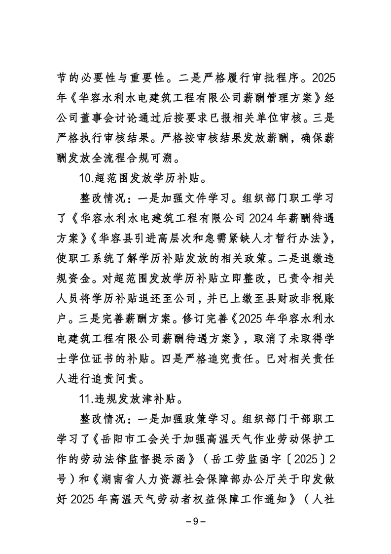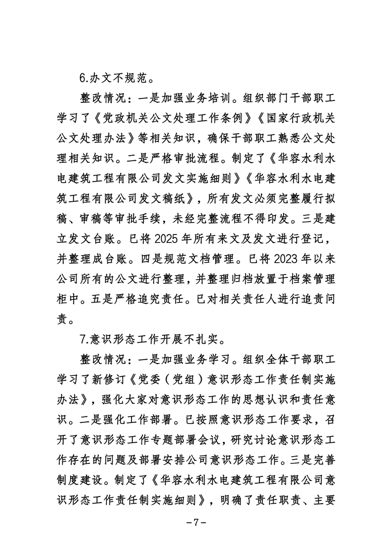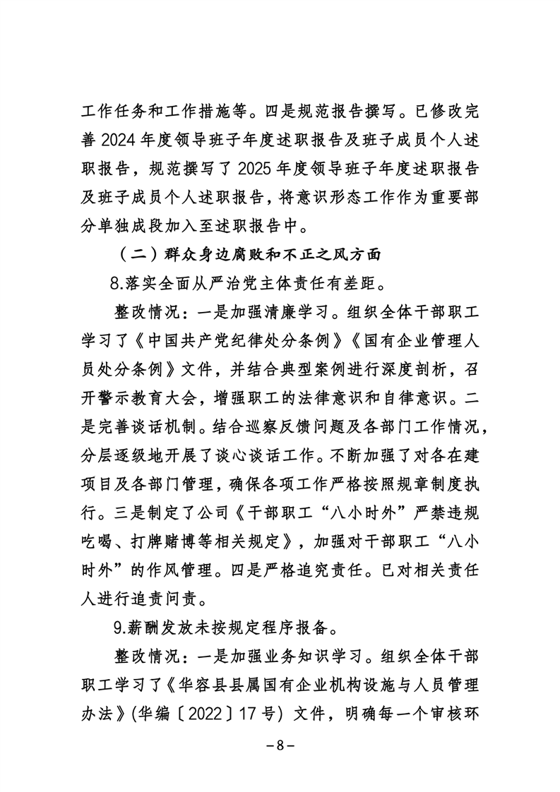 华容水利水电建筑工程有限公司关于巡察整改进展情况的通报