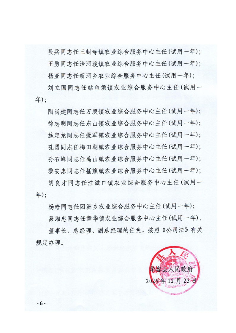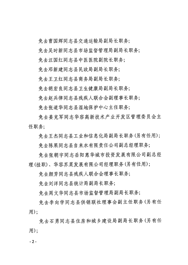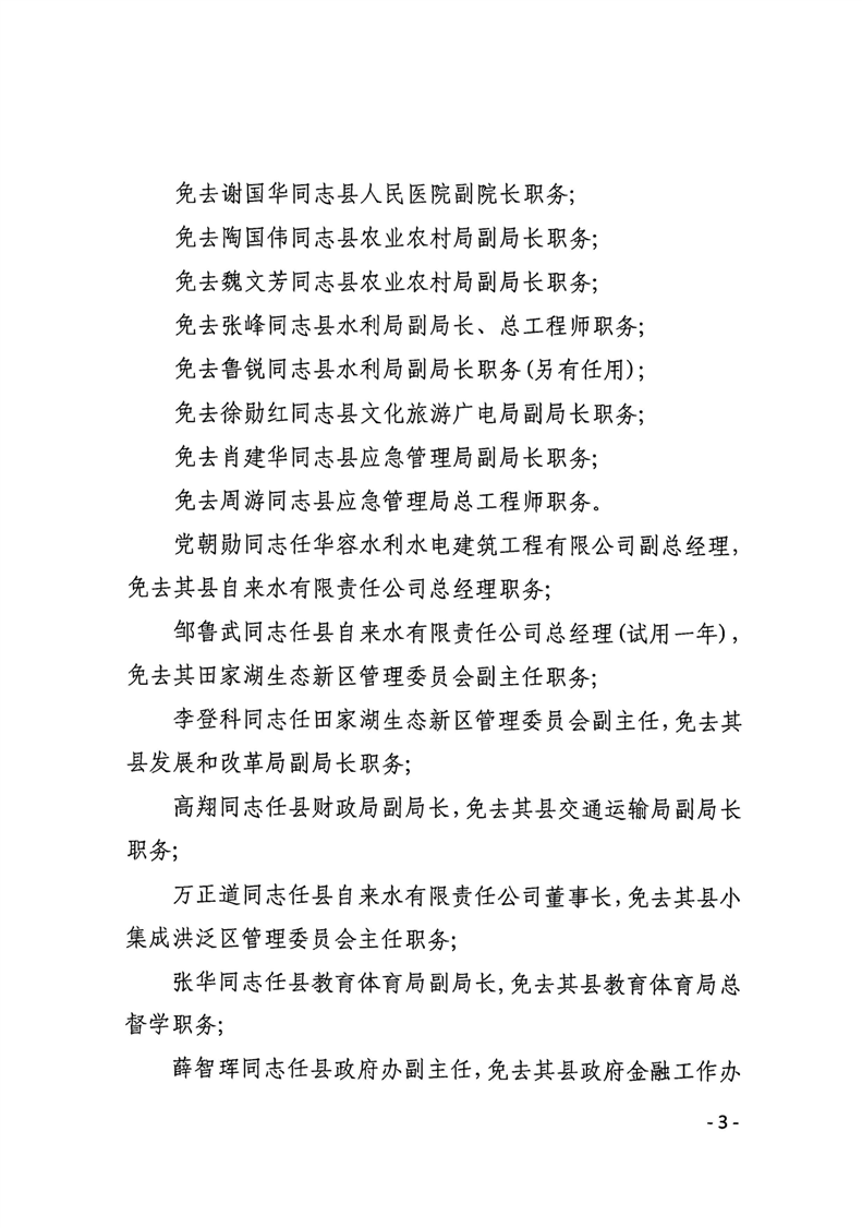 华容县人民政府关于钟勇军等同志职务任免的通知