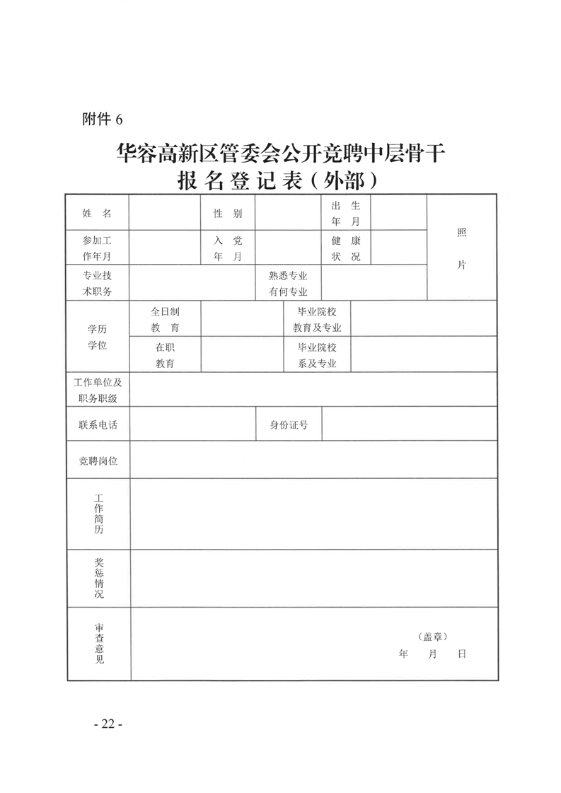 附件6:华容高新区管委会公开竞聘中层骨干报名登记表(外部).docx
