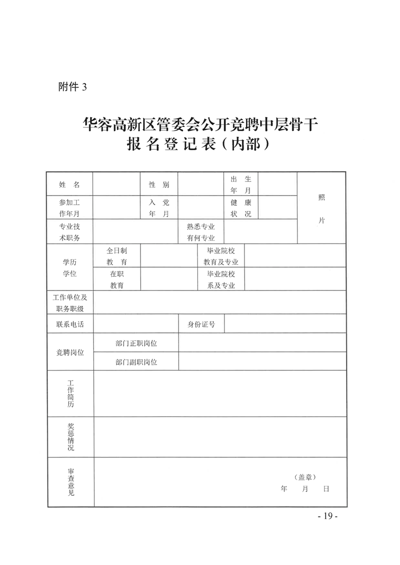 附件3:华容高新区管委会公开竞聘中层骨干报名登记表(内部).docx