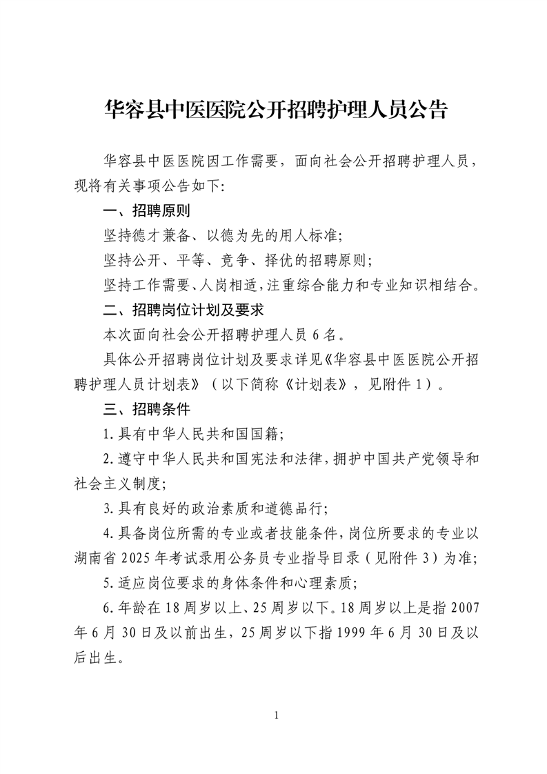 附件1:华容县中医医院公开招聘护理人员计划表.docx
