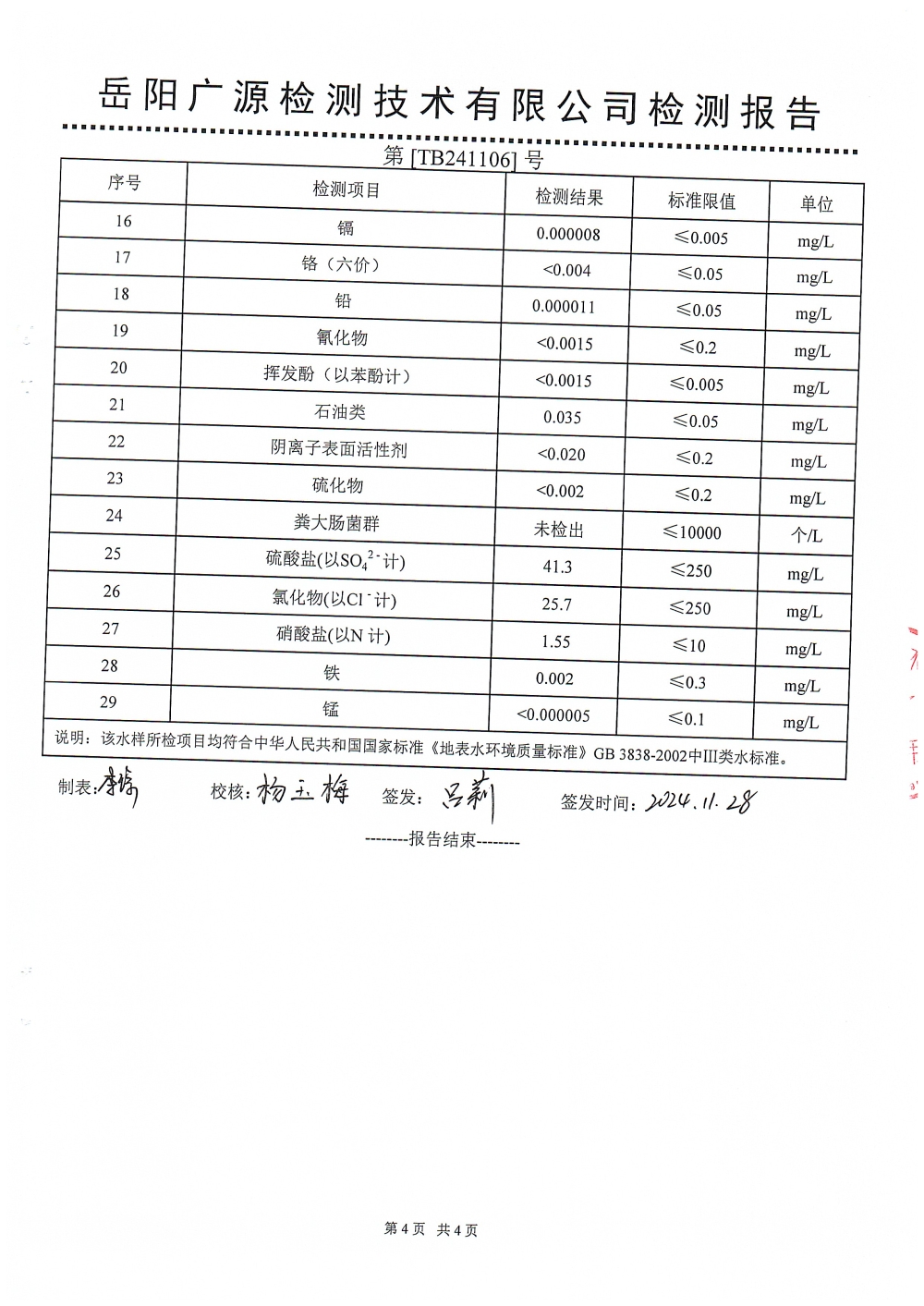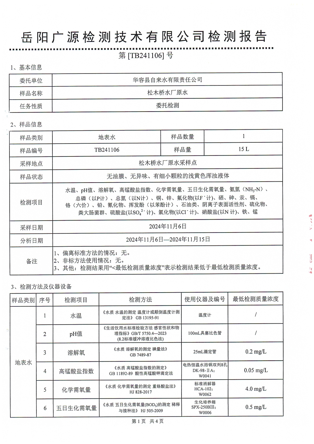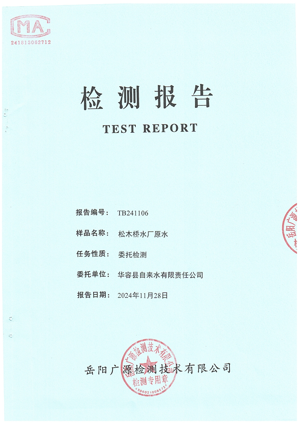 2024年11月水质检测报告(松木桥水厂原水)