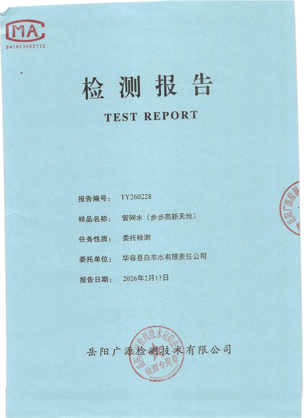 2026年2月水质来样检测报告(管网水)