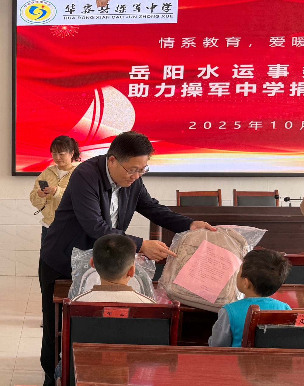 10月28日,操军中学联合岳阳水运事务中心举行学习用品捐赠活动。