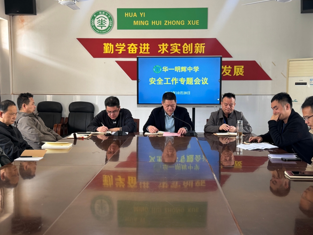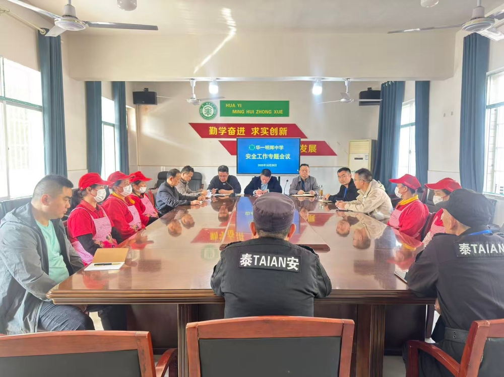 近日,华一明辉中学召开安全工作专题会议,聚集安保、食堂、宿舍、后勤等核心岗位人员,以“最高标准、最严要求、最实举措”部署校园安全工作。