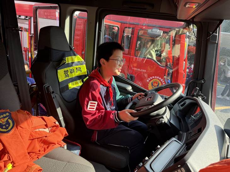 最后在消防员的帮助下,孩子们有序地登上了红色的消防车驾驶室,亲手触摸方向盘,体验了一回当“小小消防员”的感觉。这一刻,他们脸上洋溢着的自豪与喜悦,让消防安全的种子在心中深深扎根。