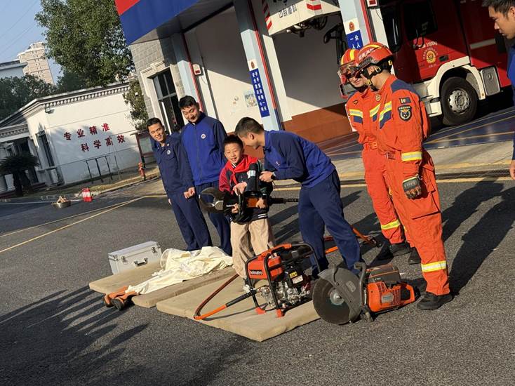 活动伊始,学生们首先被各式各样的消防器材所吸引。消防员耐心讲解了扩张器、液压扩张剪、空气呼吸器等破拆、防护装备的功能,并展示了防化服、防蜂服、战斗服等特殊服装。同学们在惊叹中近距离接触这些“救援神器”,对消防工作有了初步的认知。