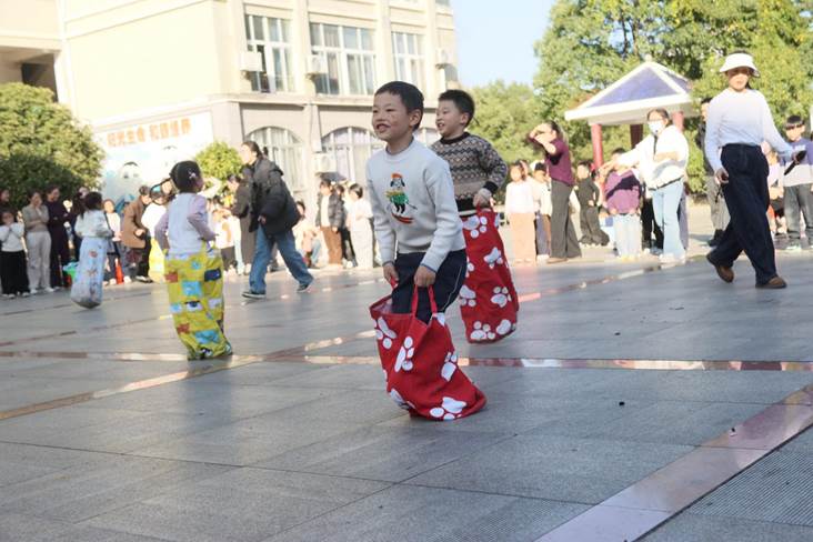 此次运动会按照学生年龄特点精心安排,分单项和团体两类,共14个项目,集趣味性、娱乐性、团结性和竞争性于一体,既有袋鼠跳、小青蛙跳荷叶、两人三足、跳绳接力赛、赶“小猪”、抬“小猪”、齐头并进等游艺项目,也有100米、200米、400米、4×100米接力、跳高、跳远等田径项目和拔河。