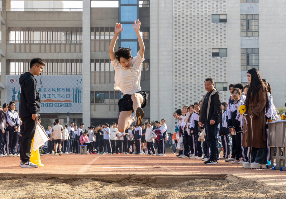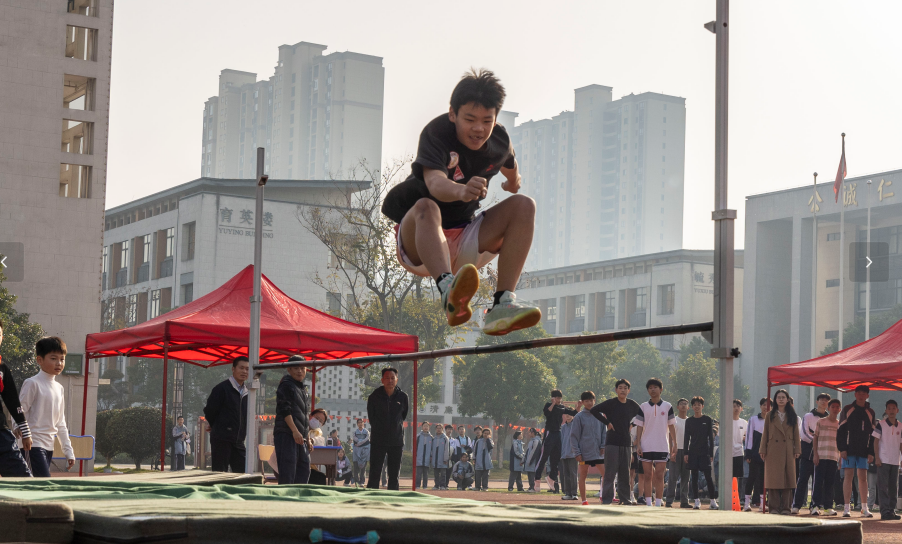 田赛区域同样精彩纷呈。跳高运动员一次次轻盈跃起,挑战新的高度;跳远选手助跑、踏跳、腾空,在沙坑中留下青春的足迹。他们身体划出的优美弧线,仿佛是他们放飞的、渴望抵达更高更远的梦想。每一位站上赛场的学子,都在用汗水诠释着“快乐参与”的真谛——无论胜负,拼搏过即是英雄。
