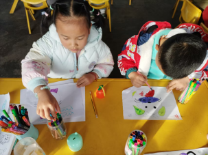 与此同时,大班的孩子们则沉浸在自制十二生肖绘本的创意世界里。孩子们充分发挥自己的想象力和创造力,化身“小小设计师”。他们先用画笔勾勒出自己喜欢的生肖形象,色彩搭配大胆而鲜艳,充满了童真与想象力。随后,孩子们小心翼翼地将画好的生肖图案粘贴在绘本纸上,并配上简单的文字说明。活动结束后,孩子们纷纷展示自己的作品,互相交流创作心得,脸上洋溢着自豪与喜悦。