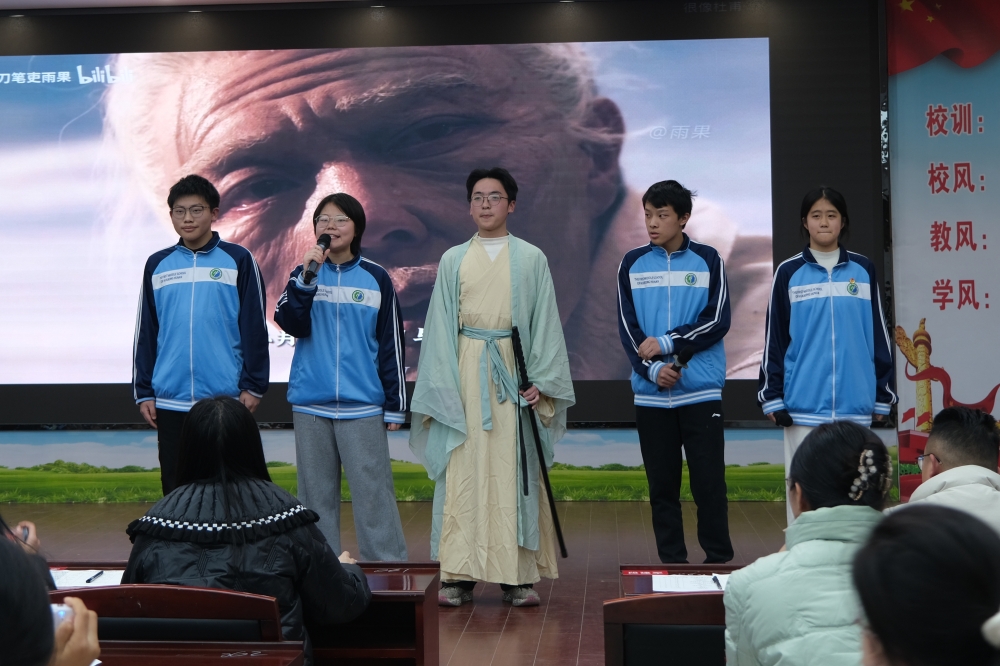 学生们以语文课本为蓝本,自编、自导、自演,将《百年孤独》《霸王别姬》《复活》等经典篇目搬上舞台。从剧本改编到角色塑造,从台词锤炼到舞台布置,每一个环节都凝聚着学生们的思考与合作。舞台上或许仍有青涩与稚嫩,但正是这些“不完美”,见证了真实而动人的成长。