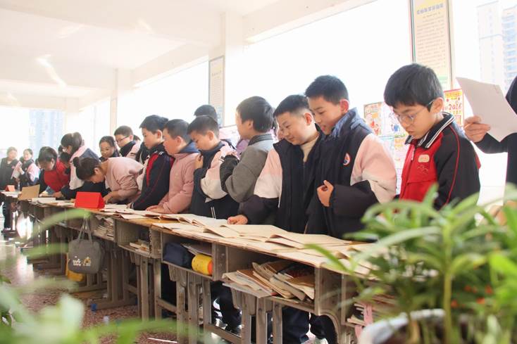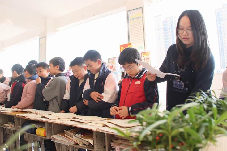 1月9日第五、六节课,各年级设于各楼层中间平台的展区同步开放。一张张摆放整齐的作业,成为校园里一道亮丽的风景线。展评内容贴合各年级学情,一二年级展出语数常规作业与特色作业,三至六年级在此基础上增加英语课堂作业与作文,特色作业作为加分项,尽显同学们的创意巧思。