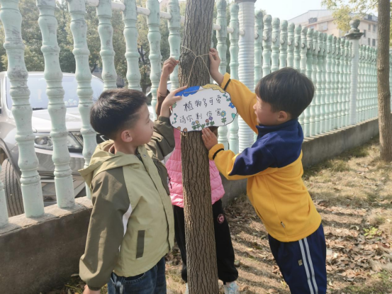 各班同步开展创意绿植手工、环保绘画、护绿倡议等活动,以多样的形式表达对自然的热爱。大班幼儿化身“户外探究家”,观察树皮、测量粗细、记录发现,孩子们在自然里愉快学习。他们还为幼儿园里的树挂上了护绿牌,个个争当“护绿小先锋”,传递环保正能量。