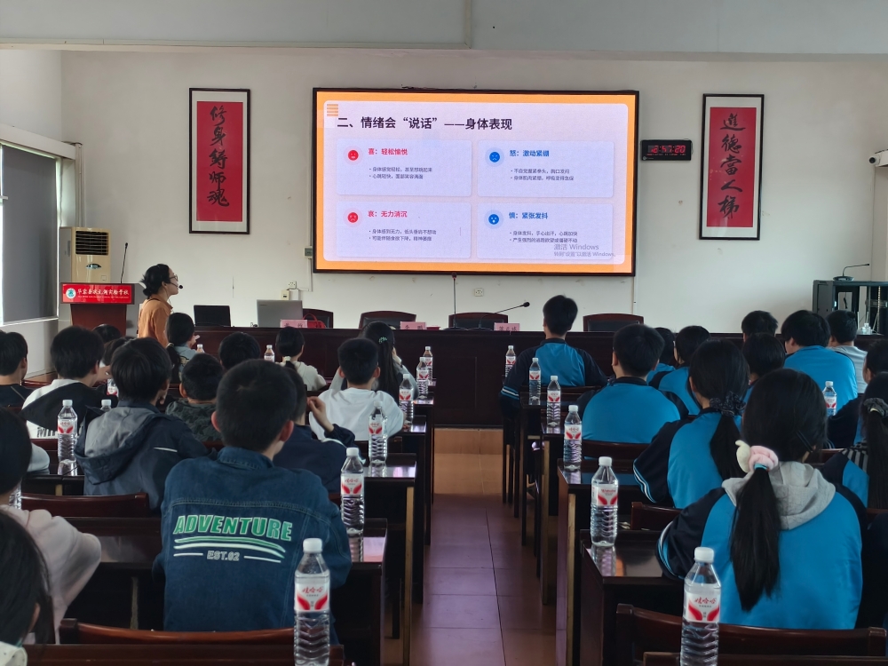 4月10日,状元湖实验学校组织各班学生代表,开展主题为“我的情绪我作主”的心理健康专题讲座。
