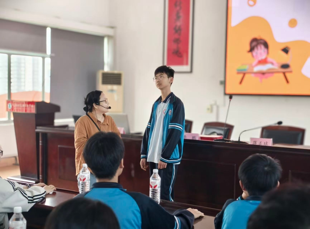 讲座过程中,王玲老师还结合青少年心理特点,分享了情绪管理的实用方法,从情绪识别、合理表达到科学调节,层层深入地指导学生如何做情绪的主人。现场互动环节,王老师与学生面对面交流,耐心解答学生关于情绪困扰的疑问,学生们认真聆听、积极回应,课堂上不时传来阵阵欢笑声与思考声。