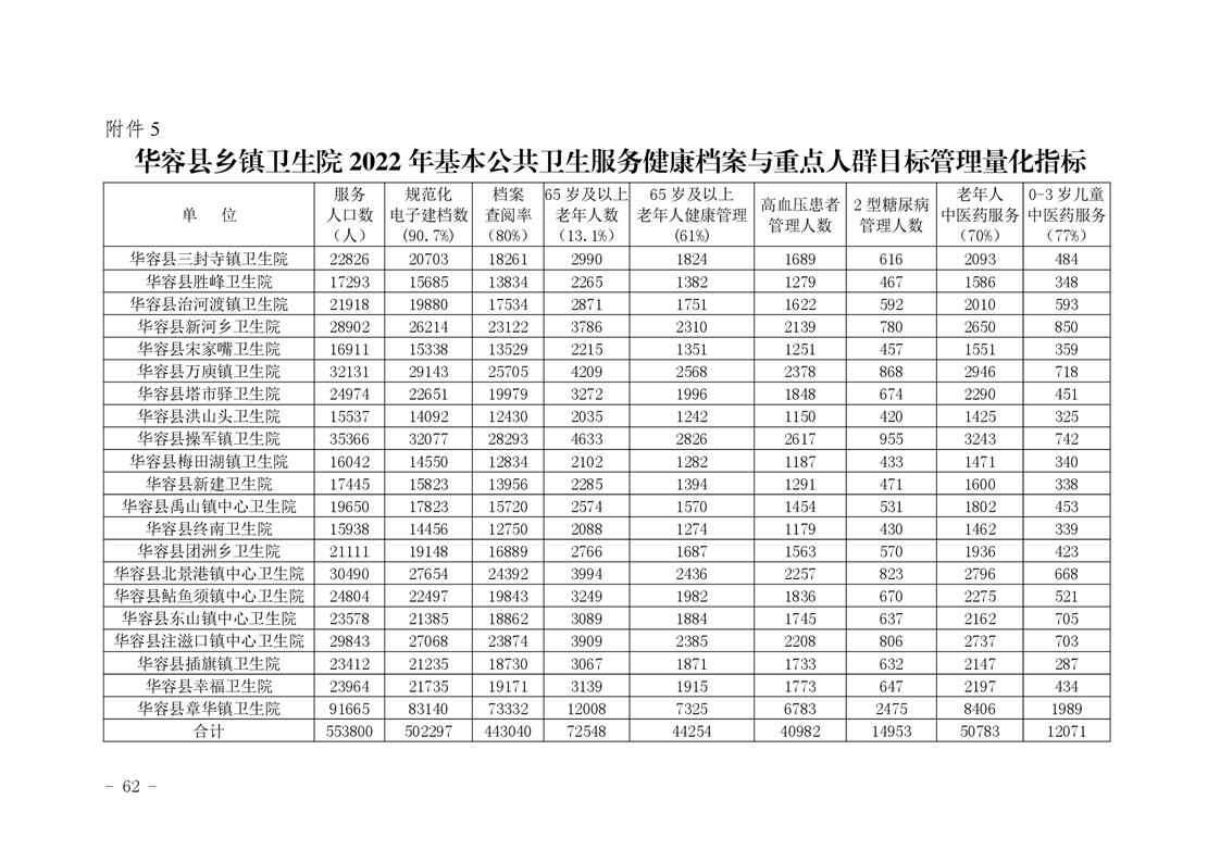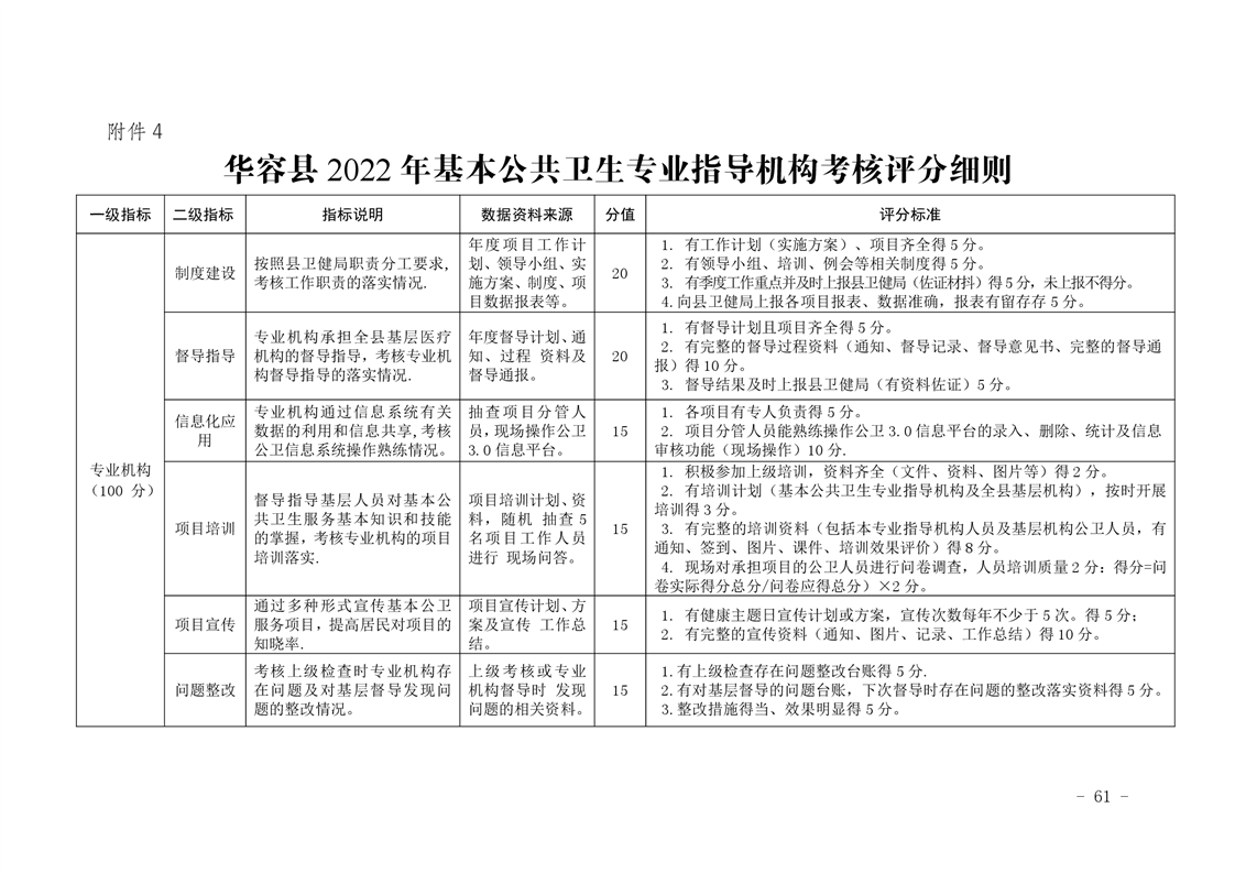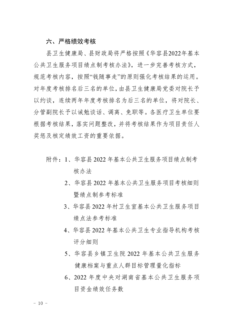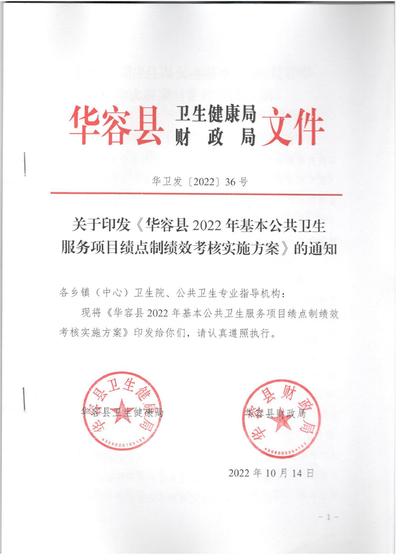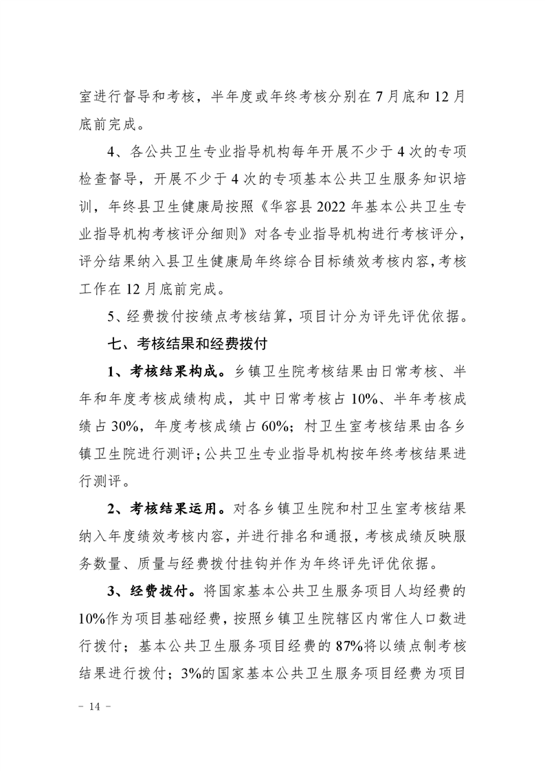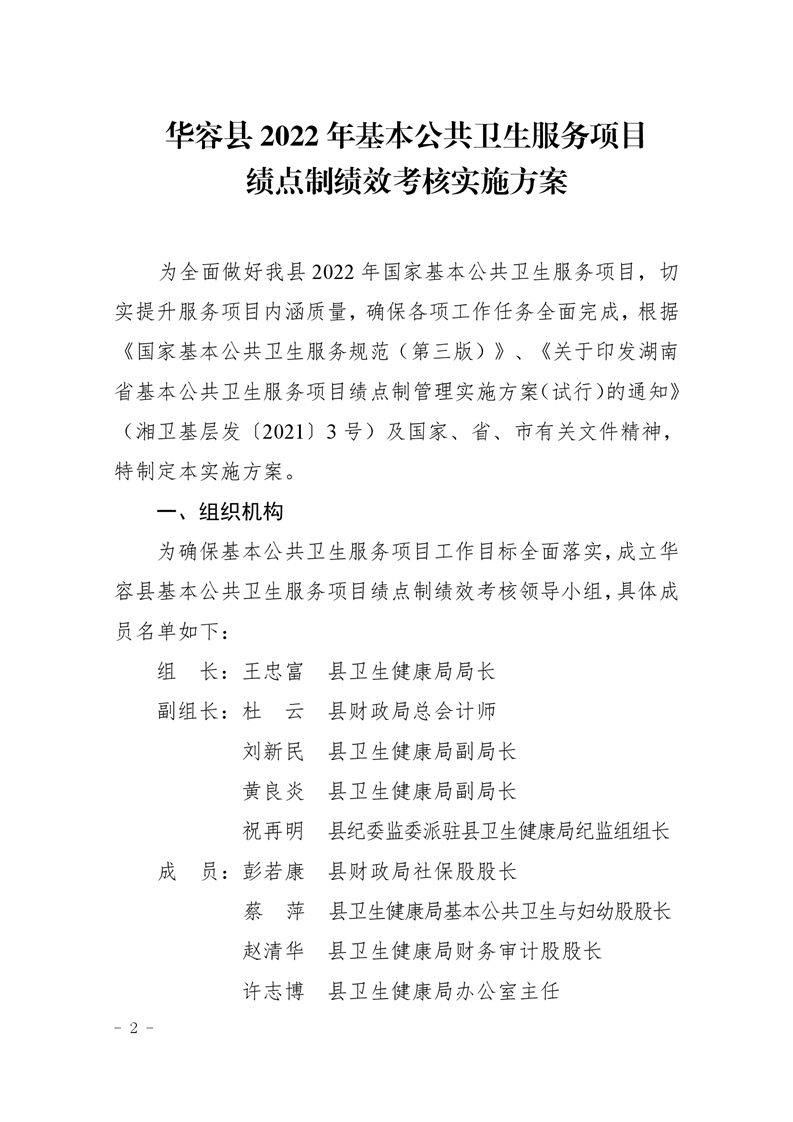关于印发《华容县2022年基本公共卫生服务项目绩点制绩效考核实施方案》的通知