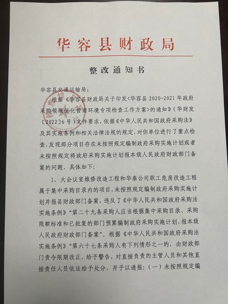 整改通知书(县交通局)