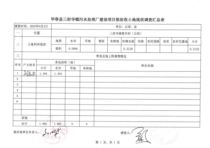 华容县三封寺镇污水处理厂建设项目拟征收土地现状调查