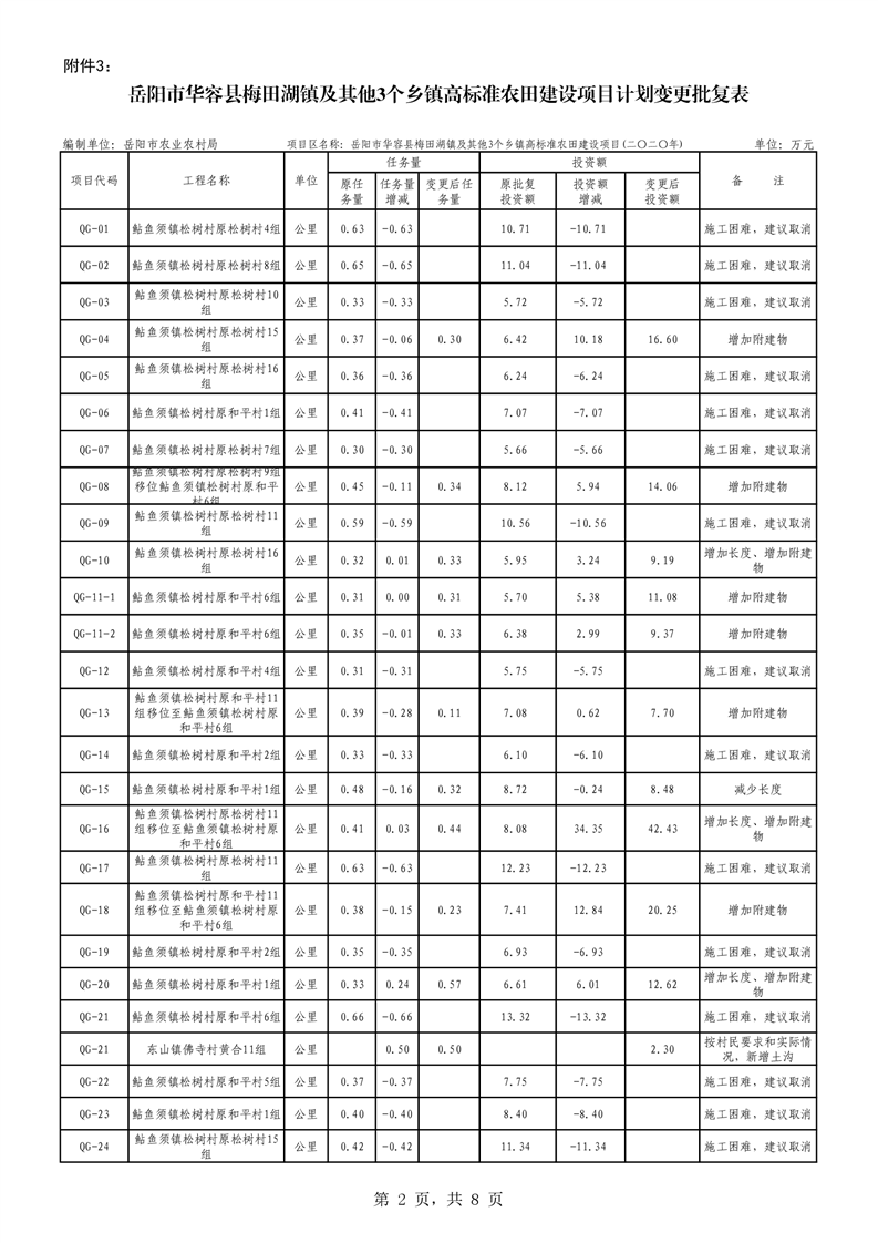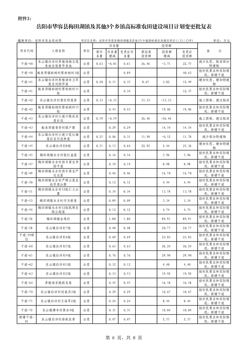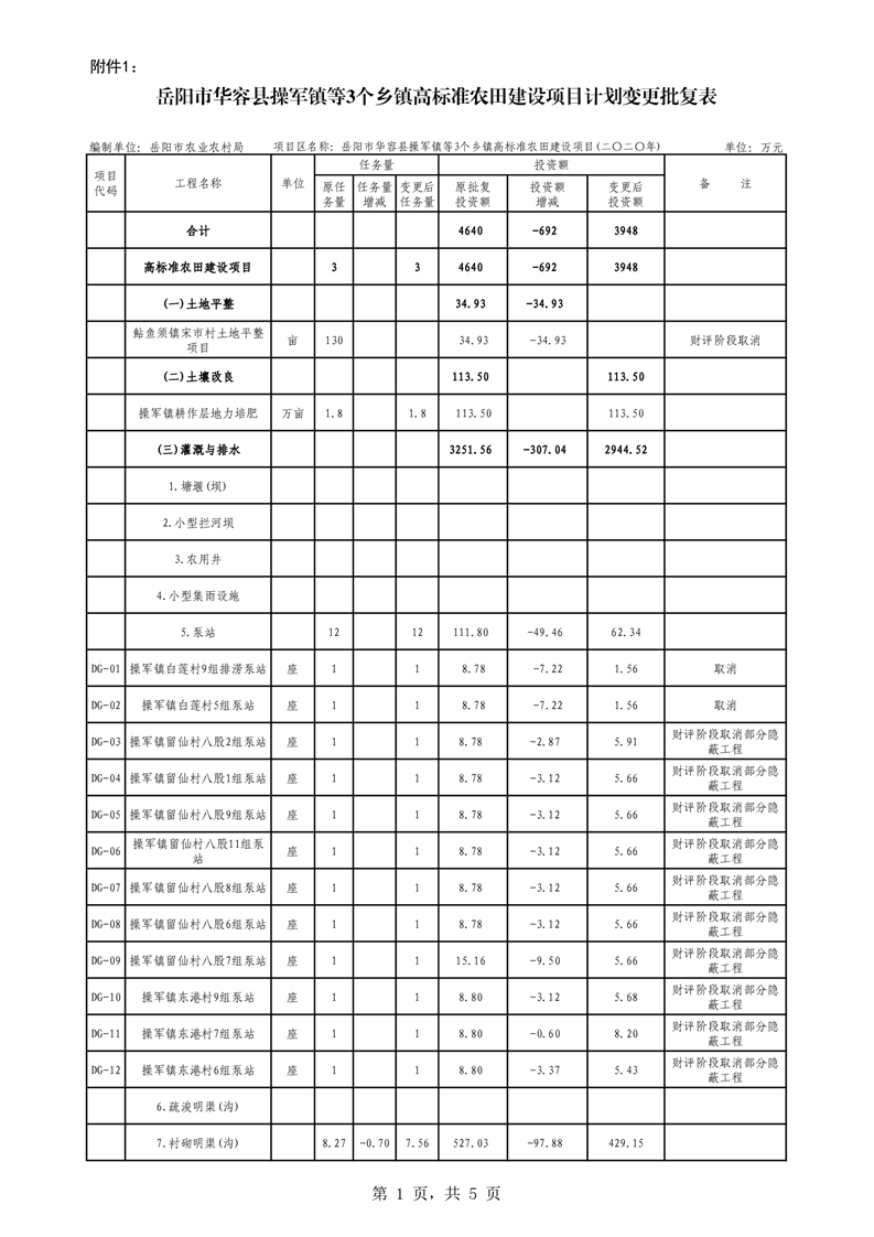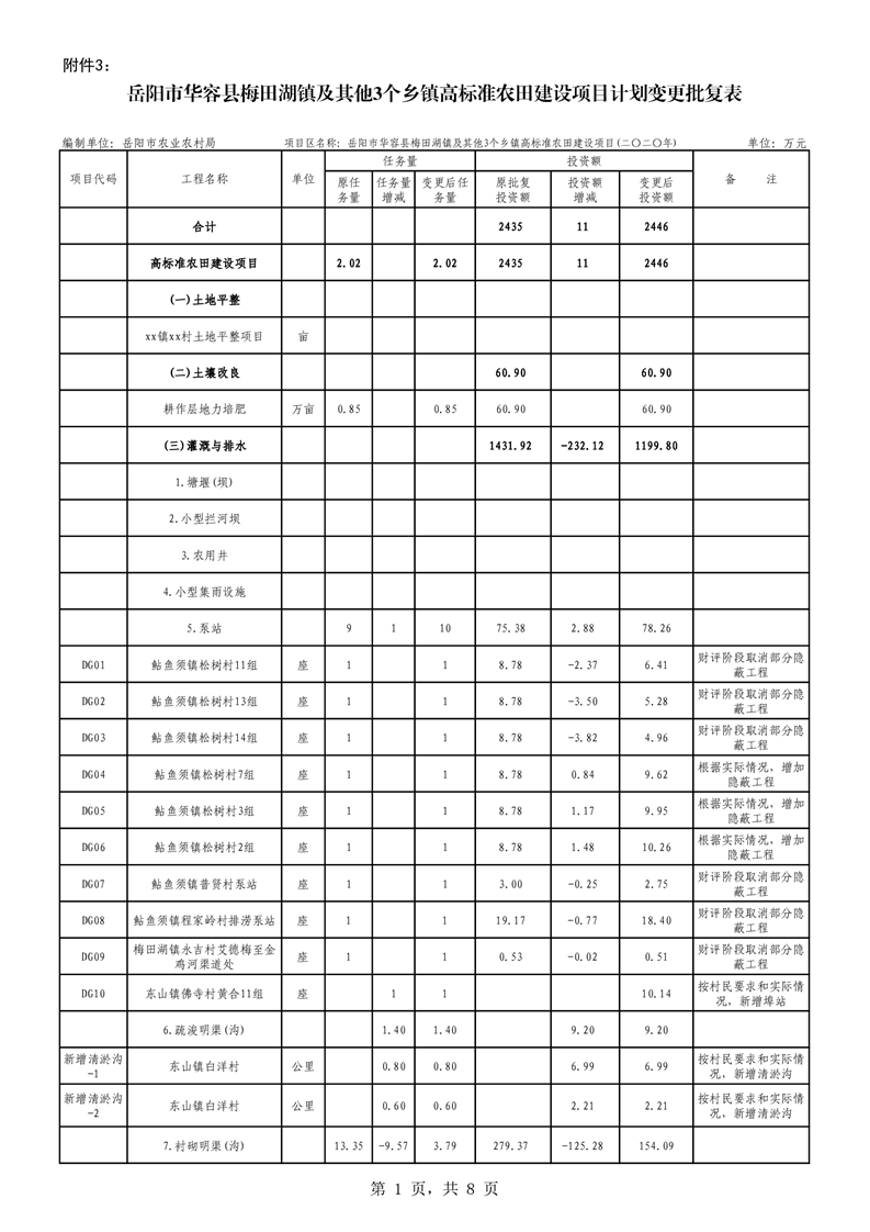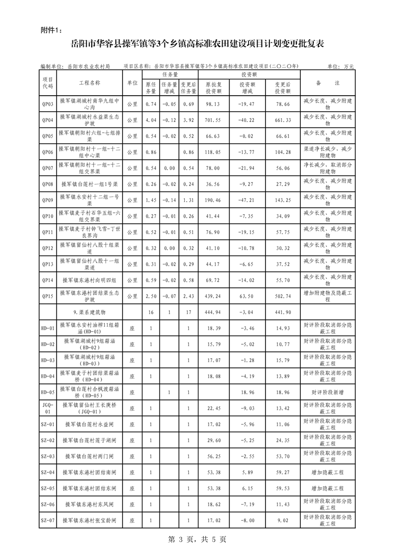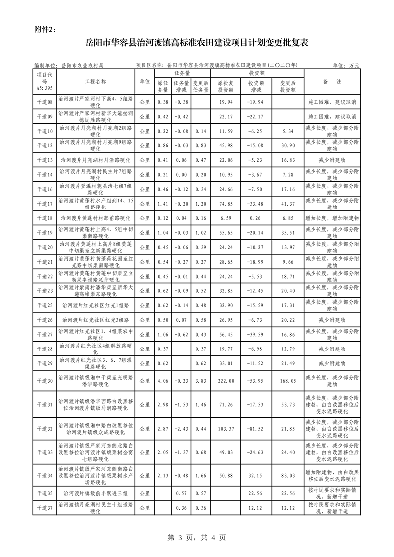 关于华容县2020年度高标准农田建设项目变更的批复