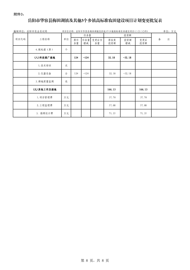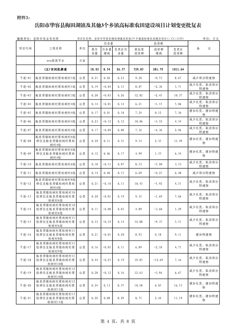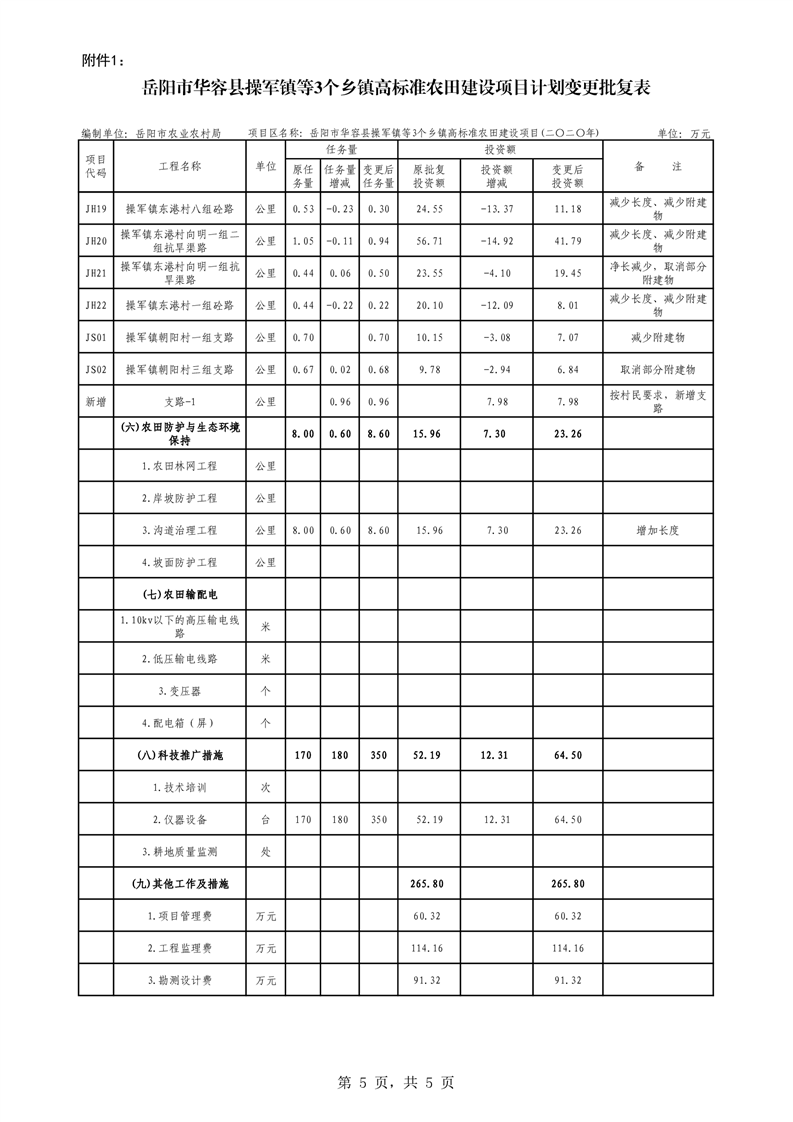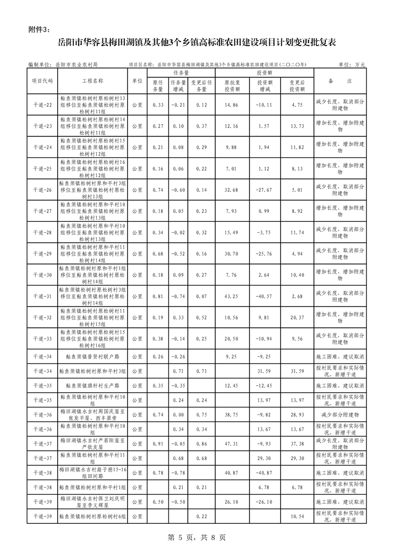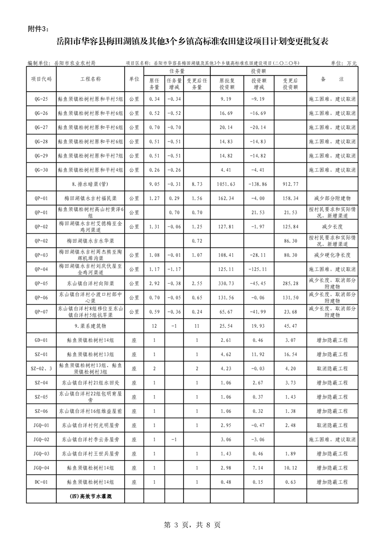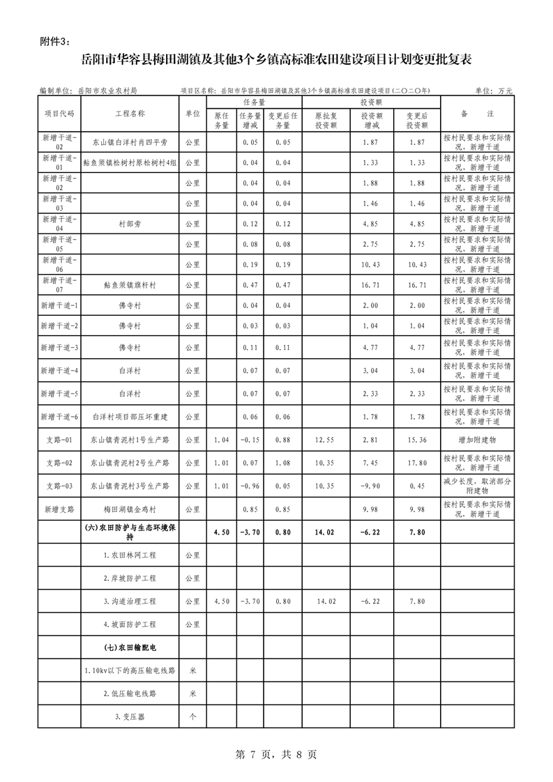 关于华容县2020年度高标准农田建设项目变更的批复