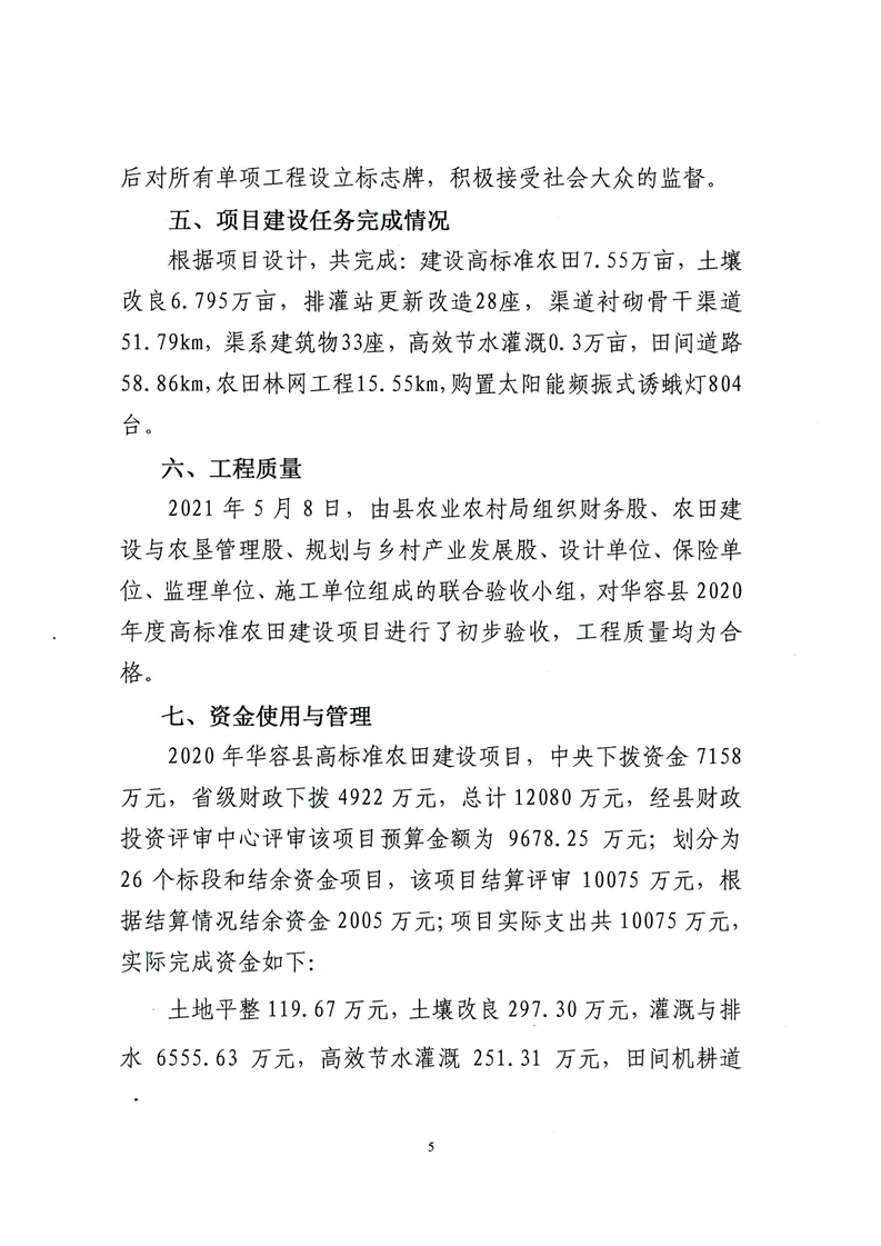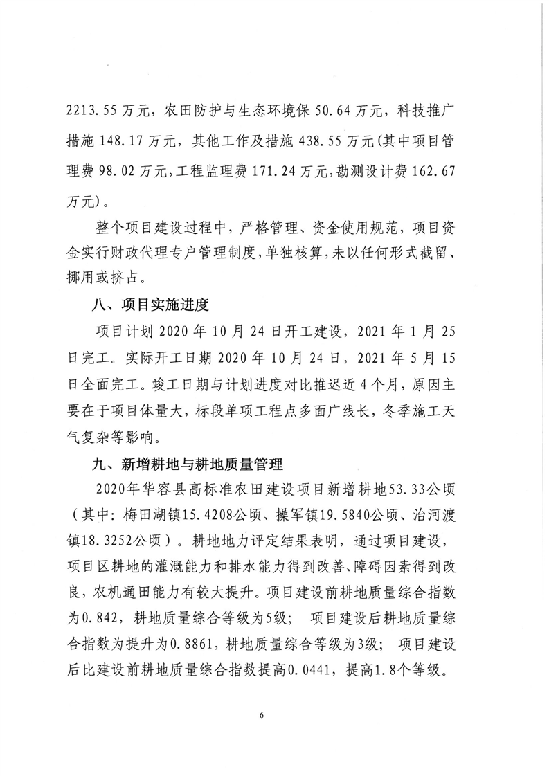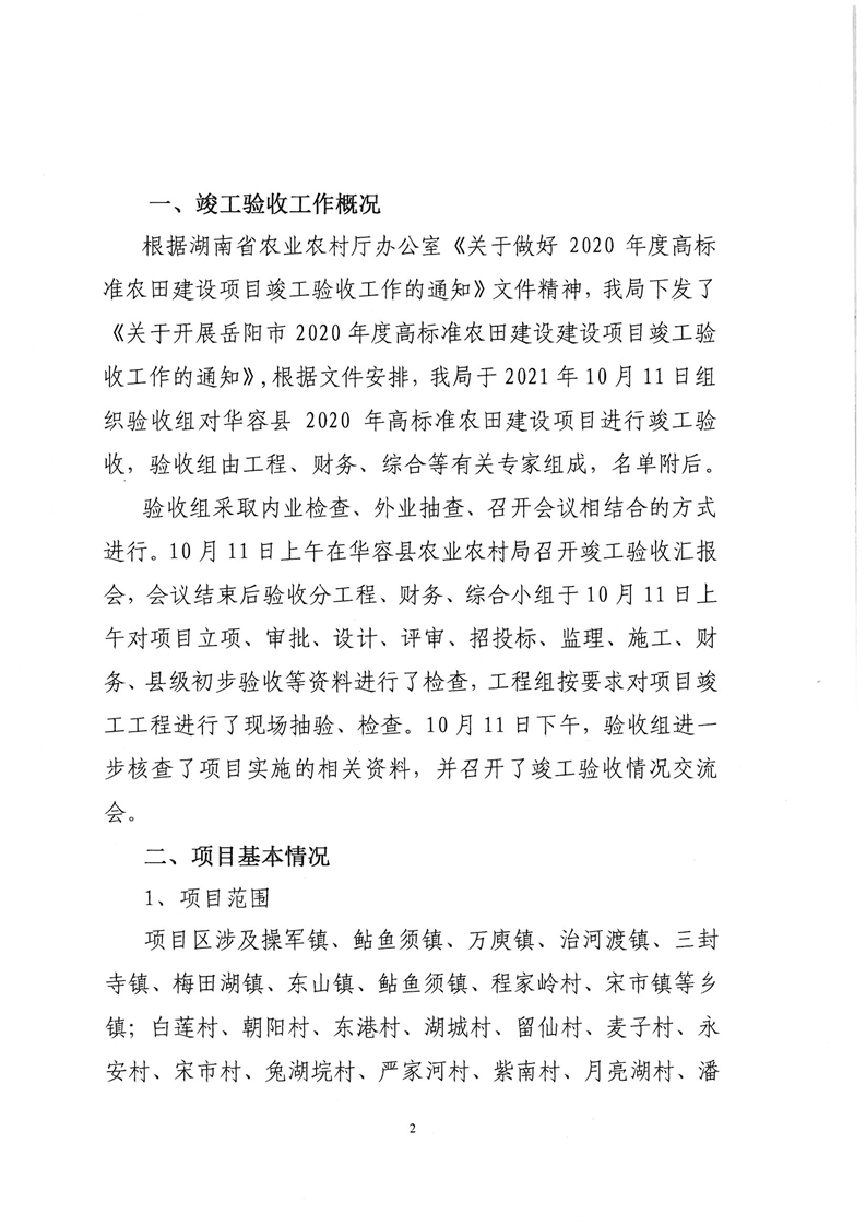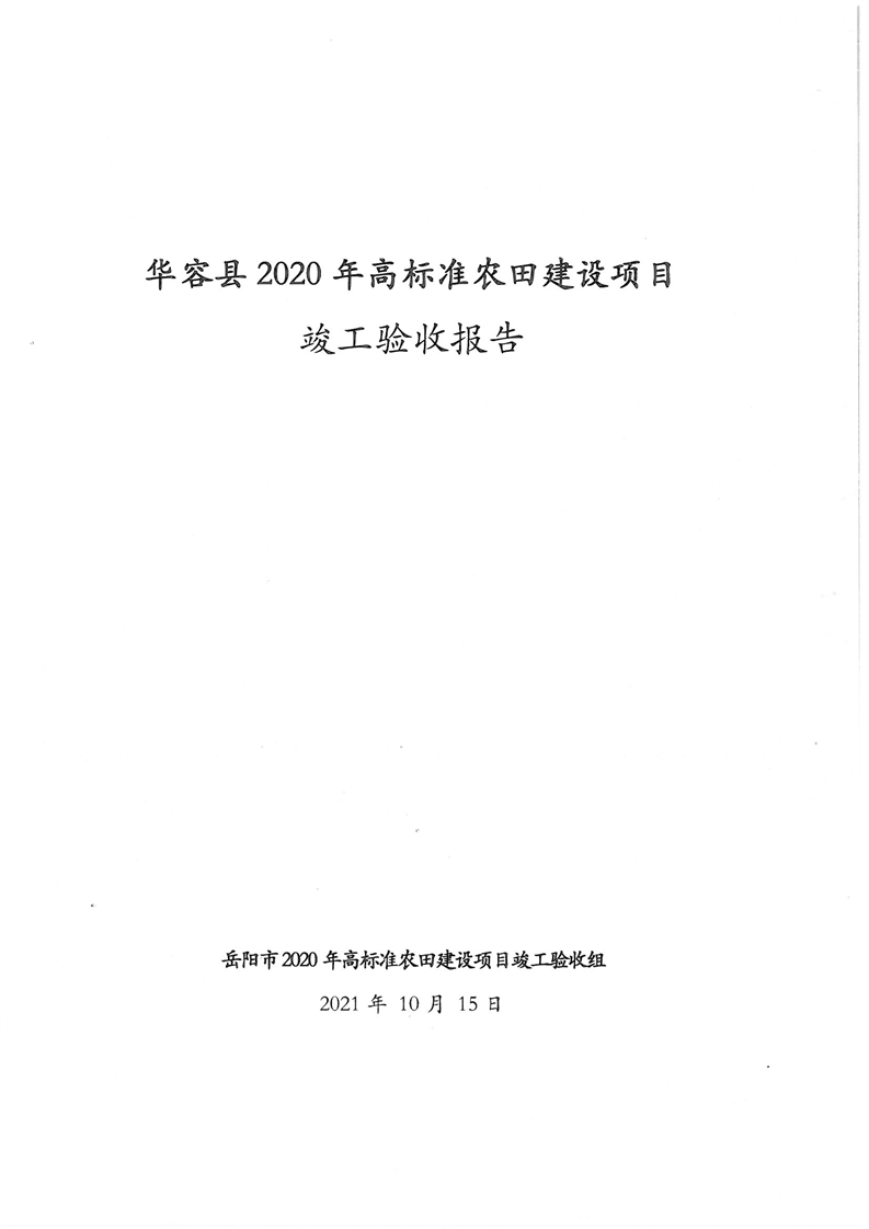 华容县2020年高标准农田建设项目竣工验收报告