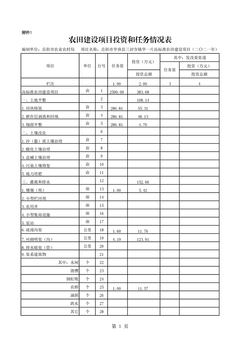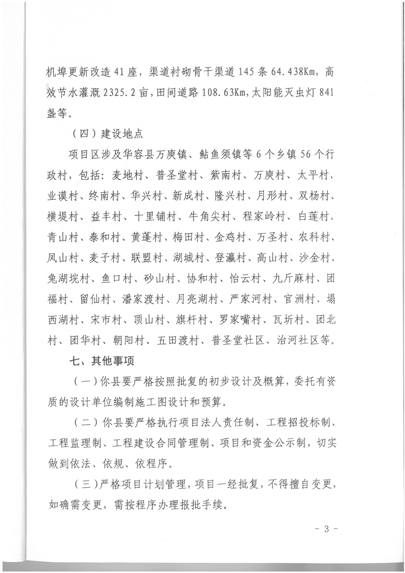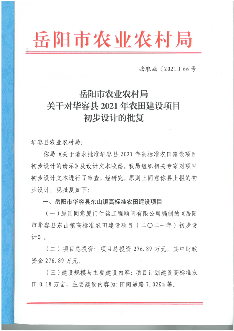 华容县2021年农田建设项目初步设计的批复