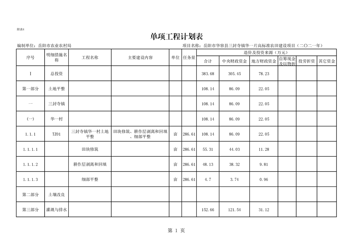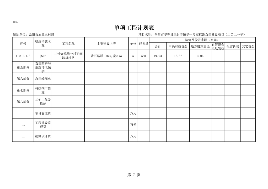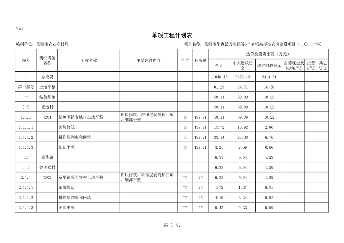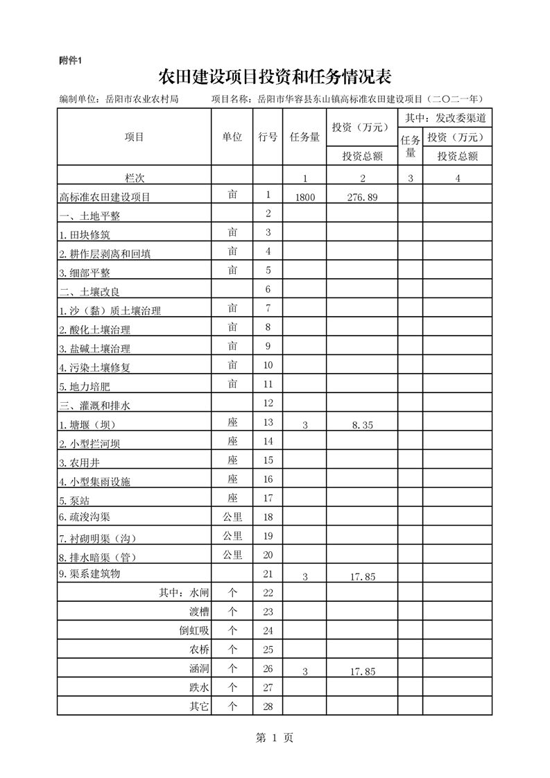 华容县2021年农田建设项目初步设计的批复
