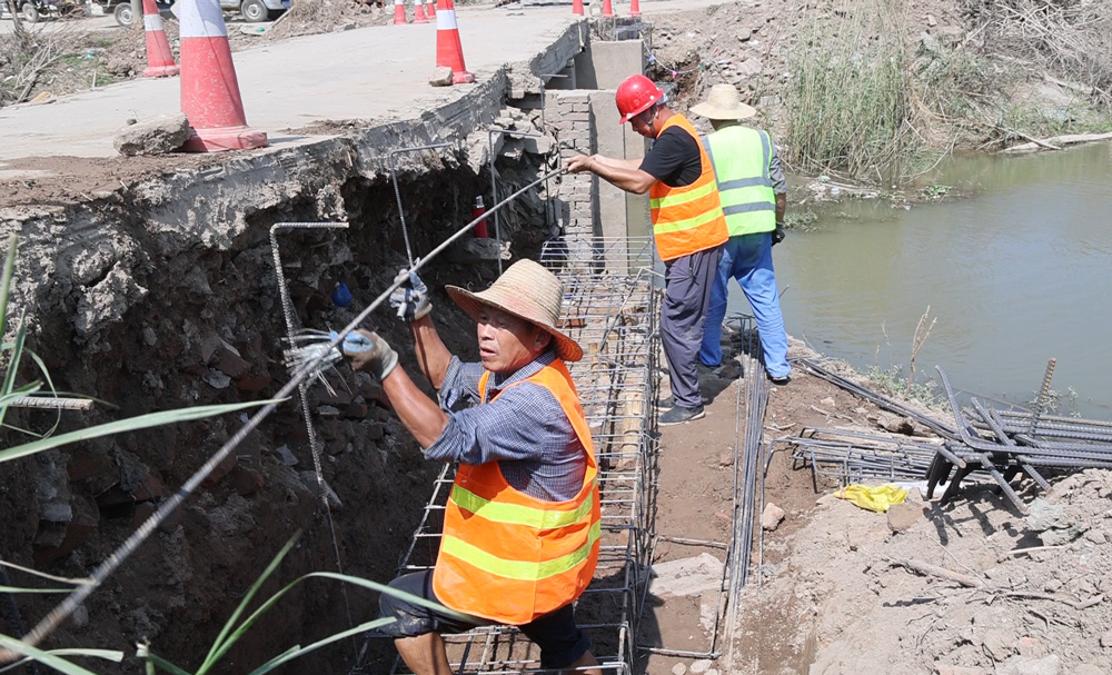 华容融媒体中心讯(记者 杨雅淇 董华杰)8月23日,在华容县团洲乡通往各村灾后重建的道路上,华容县公路事务中心正组织加紧修复受损桥梁,确保群众便利、安全出行。