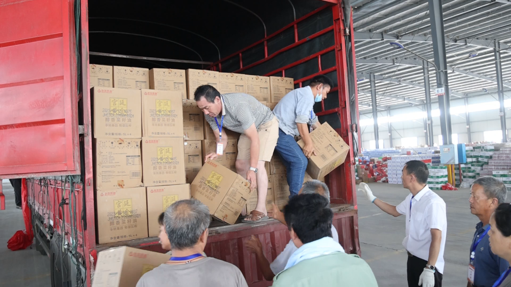 当天上午11时,两辆满载大米、面条、菜籽油的物资车抵达华容县华中铁水联运储配基地。此次捐赠共计1500袋大米,2000包面条,2000升菜籽油,随着一箱箱物资搬下货车,省、市供销社的爱心也将很快送到受灾群众手中。