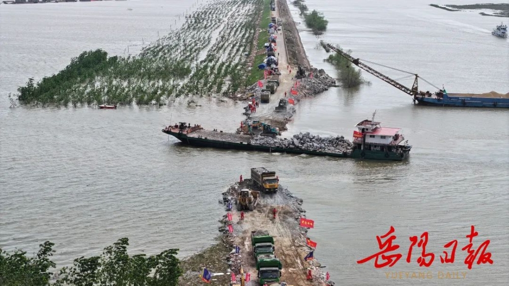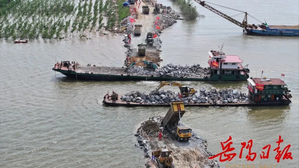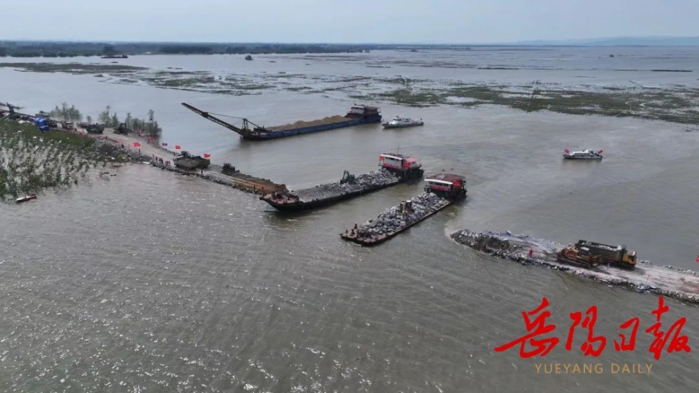 截至今天下午15时,华容县团洲垸决口累计进占168米(左岸94米,右岸74米),剩余58米。