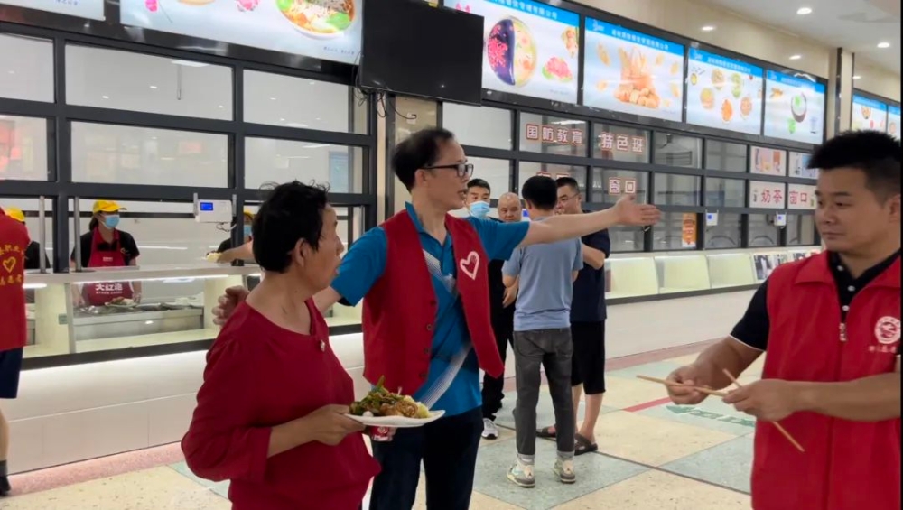 “中午有鸭肉、辣椒炒肉、青菜,还准备了酸奶,饭菜很合胃口,都是免费提供给我们的。”家住团洲社区的居民毛燕富,今天上午9时,乘坐安排的大巴车安全抵达安置点后,很快便吃上了热腾腾的饭菜。 “目前,我们食堂是全天候备餐,每个时间段都安排了志愿者值守,保证转移来的群众随时都有热饭、热菜吃。”职业中专安置点工作人员表示,今天中午就餐人数有近400人。