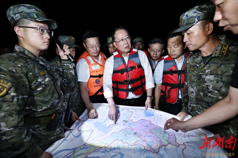 (7月6日凌晨,沈晓明主持召开视频调度会,研究部署华容县团洲垸堤坝决口险情处置工作。) 沈晓明指出,当前华容县团洲垸堤坝决口险情正处于处置的关键时期,要迅速成立前方指挥部,有关省领导下沉一线指挥,压实一线力量,加强统筹调度,确保防汛抗洪抢险救灾有力有序。要加强对团洲垸及周边垸安全区域的评估,以“一万”的措施防范“万一”的可能,坚决果断及时转移群众,确保不落一户、不漏一人。要加强对间堤的巡查防守,组织人员力量除险加固,坚决守住“第二道防线”。要实时监测洞庭湖水位,科学制定方案,及时堵住干堤缺口,尽快排除险情。要做好群众工作,发动群众积极参与防汛抗洪抢险救灾,并妥善转移安置避险群众,把群众生活保障到位。要充分发挥各级党组织战斗堡垒作用,党员要冲锋在前,干部要身先士卒,党员干部要成为滔滔洪水中的中流砥柱,成为群众的“主心骨”。要加强宣传舆论工作,主动发布信息,回应社会关切,更好形成防汛抗洪抢险救灾的合力。