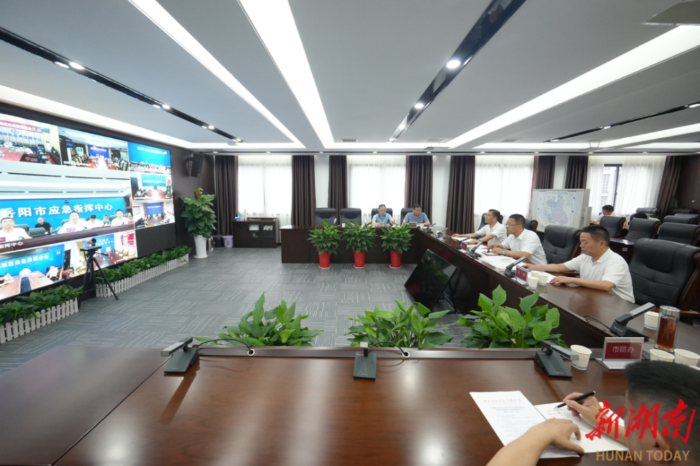 (7月5日下午,谢卫江在岳阳市应急指挥中心紧急调度华容县团洲垸险情处置工作并召开全市防汛抗灾视频调度会。)