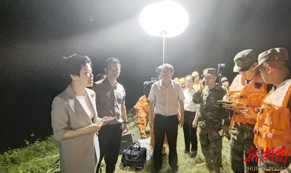 (7月5日晚,毛伟明在华容县团洲垸洞庭湖堤防决口现场调度指挥抢险救援。)