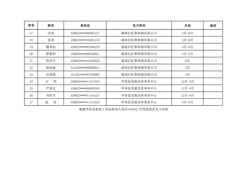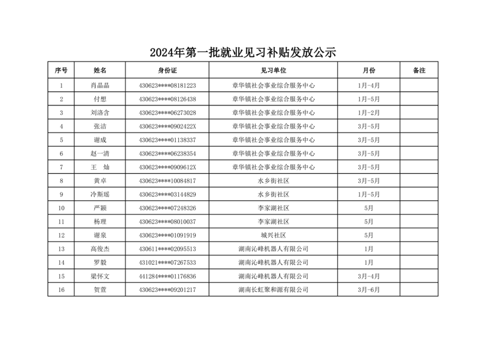 2024年第一批就业见习补贴发放公示