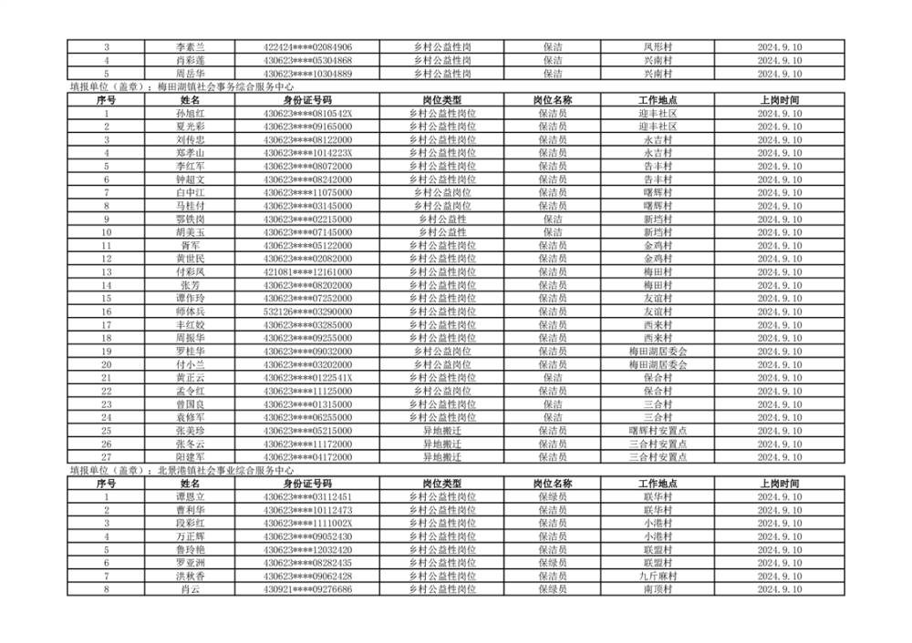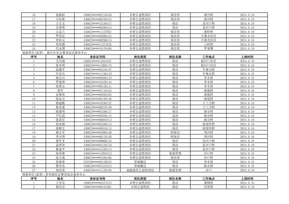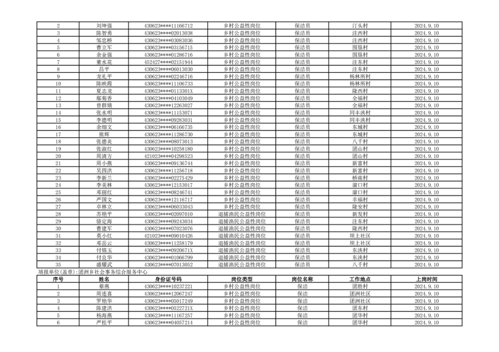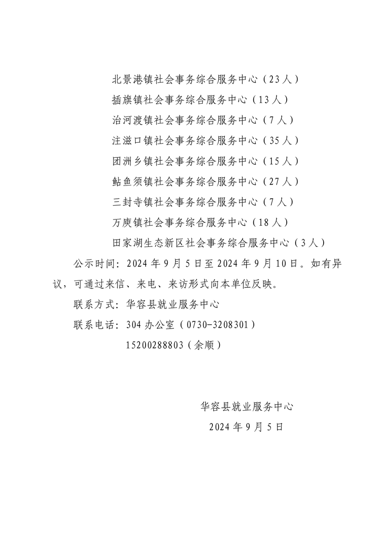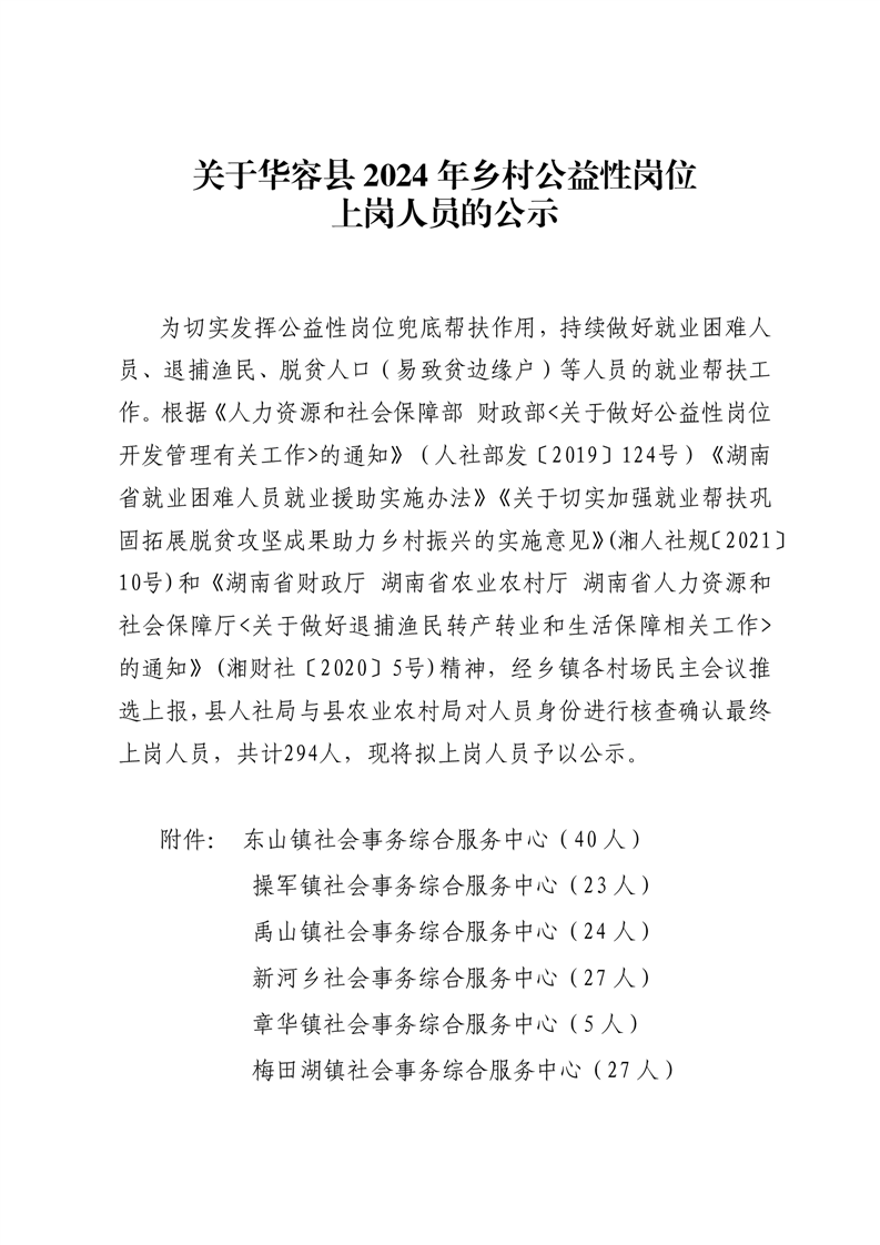 关于华容县2024年乡村公益性岗位上岗人员的公示