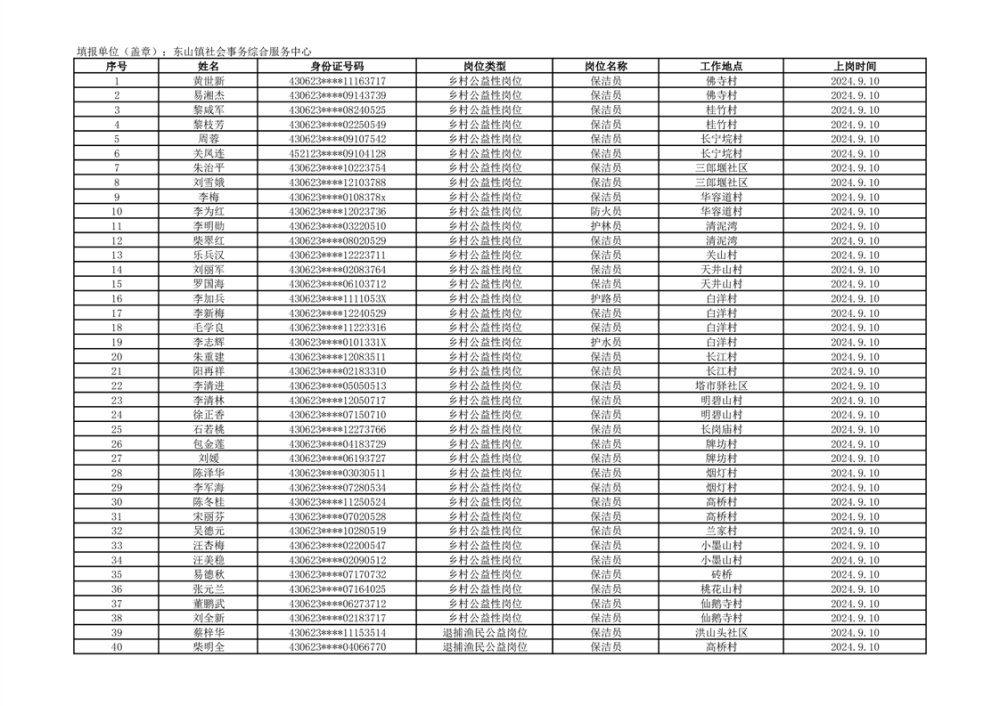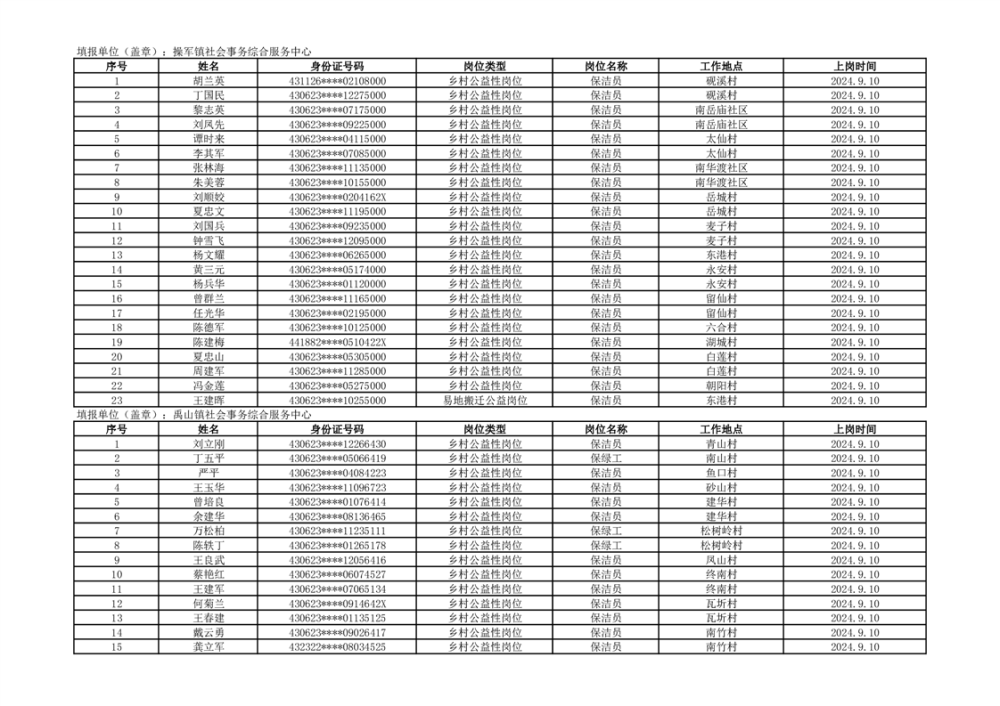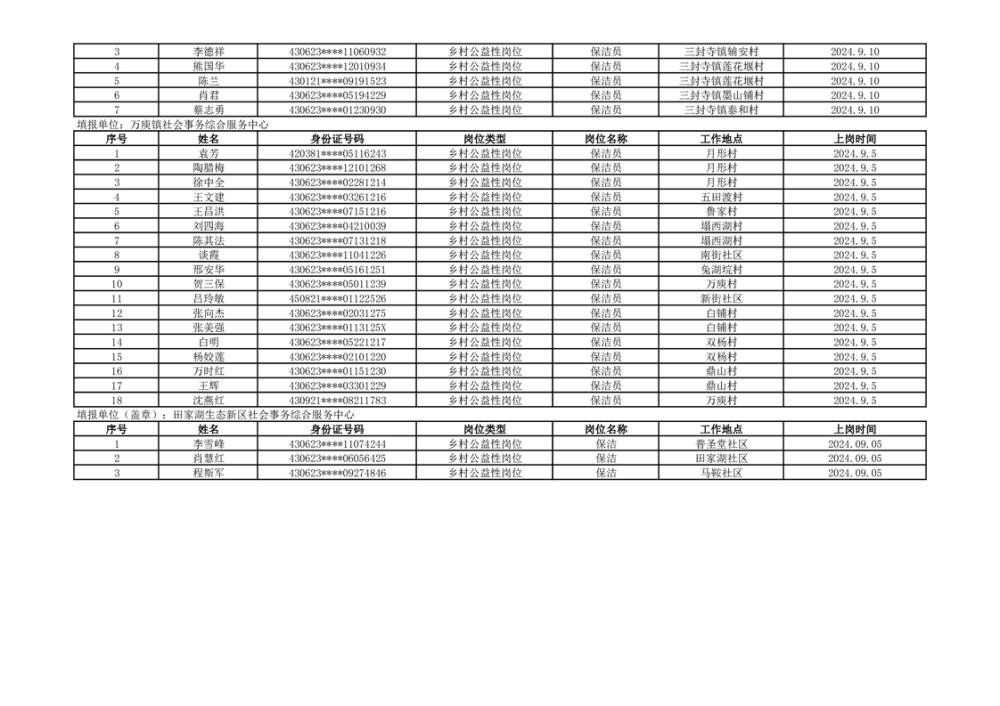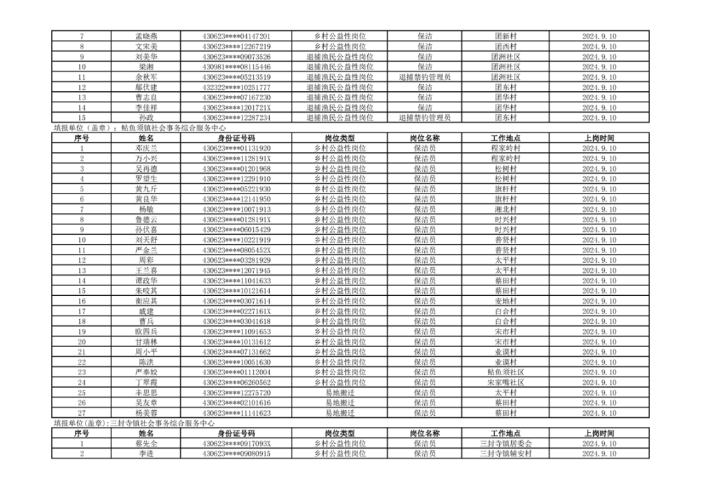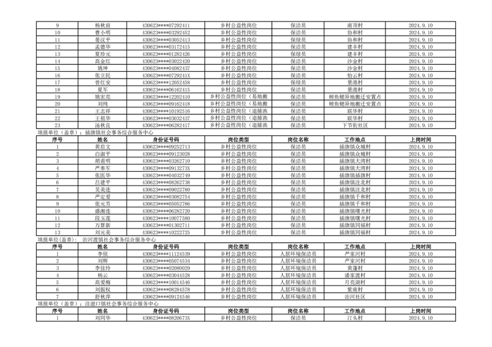 关于华容县2024年乡村公益性岗位上岗人员的公示