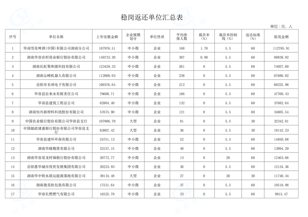 2024年稳岗返还单位汇总表(二)
