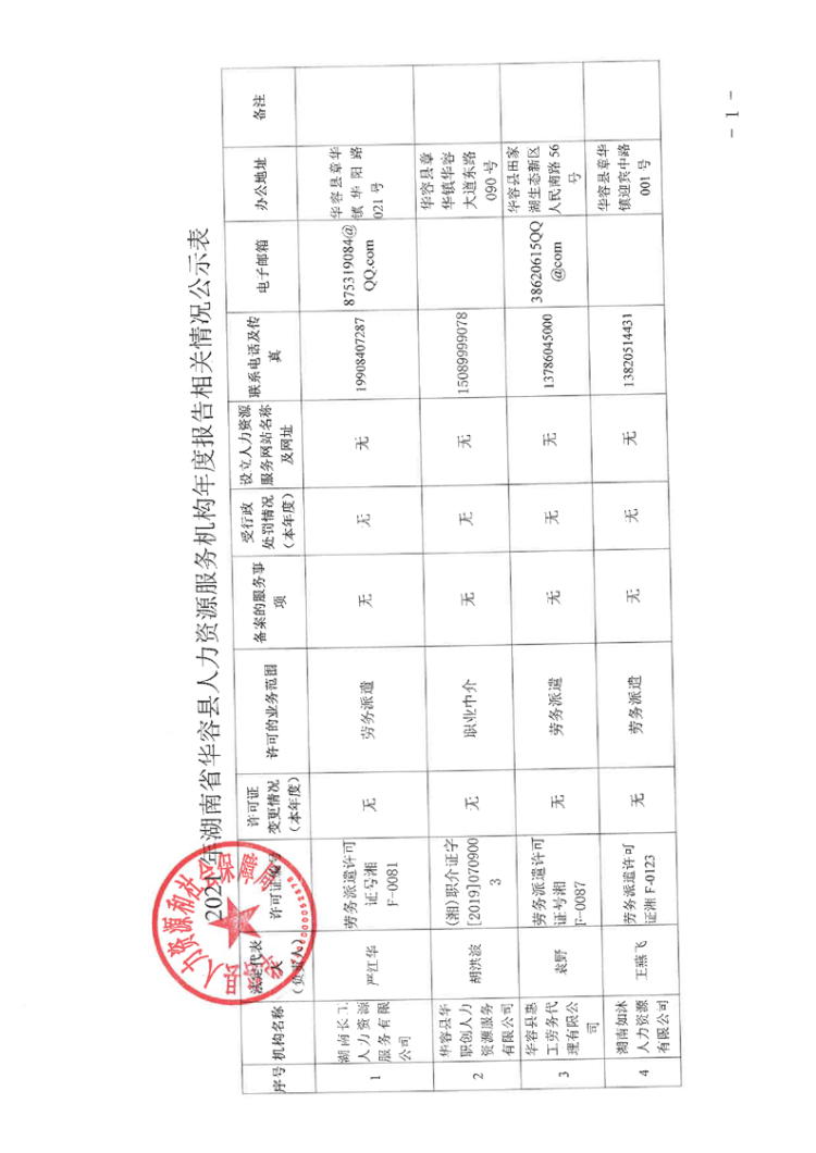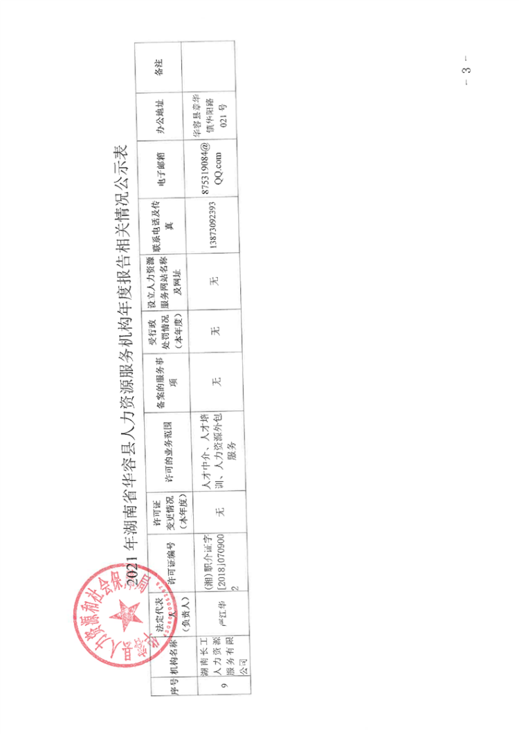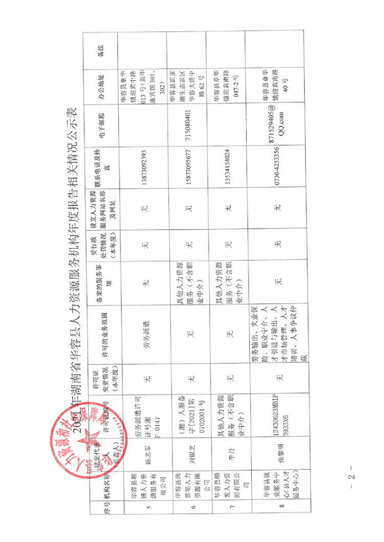 2021年湖南省华容县人力资源服务机构年度报告相关情况公示表