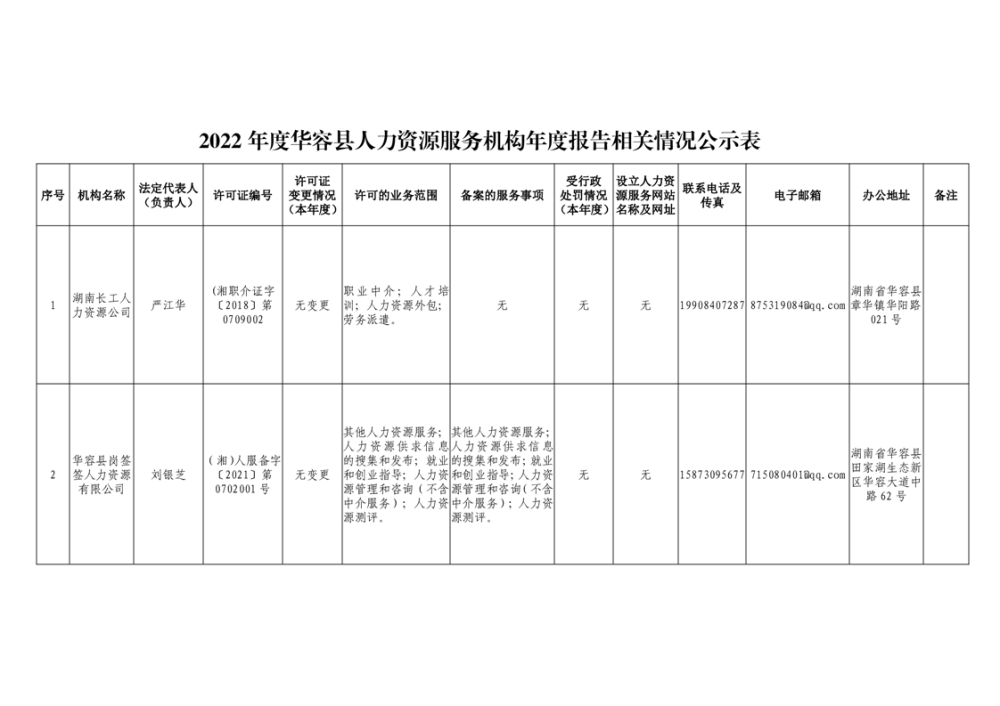 2022年度华容县人力资源服务机构年度报告相关情况公示表