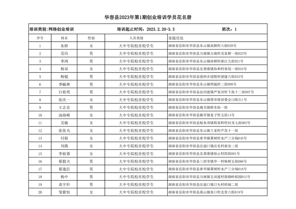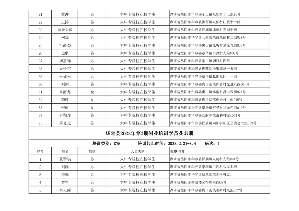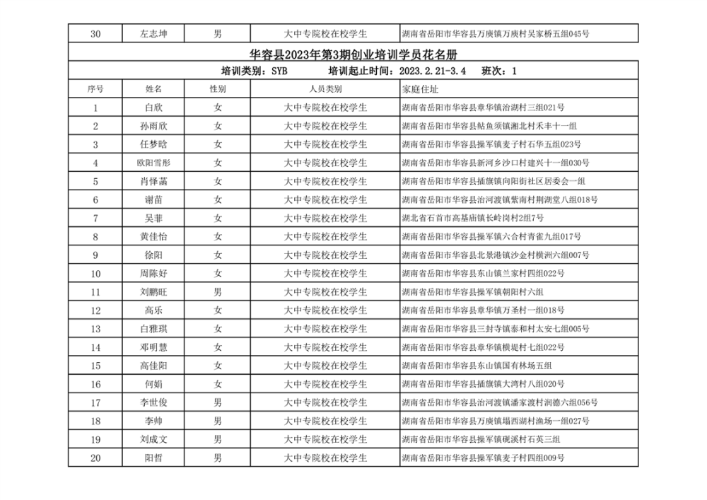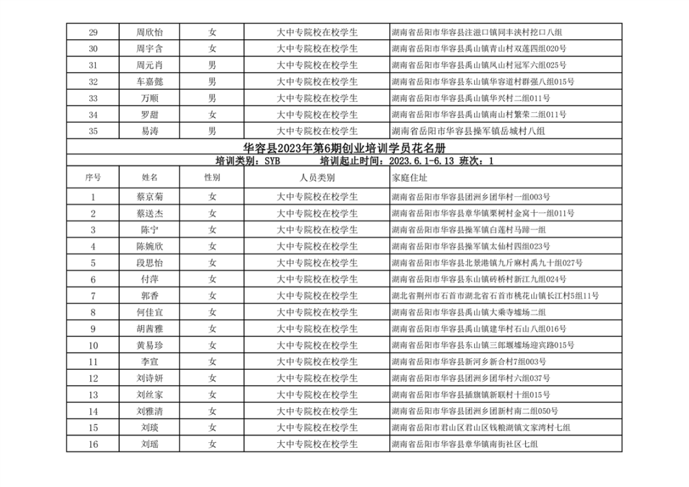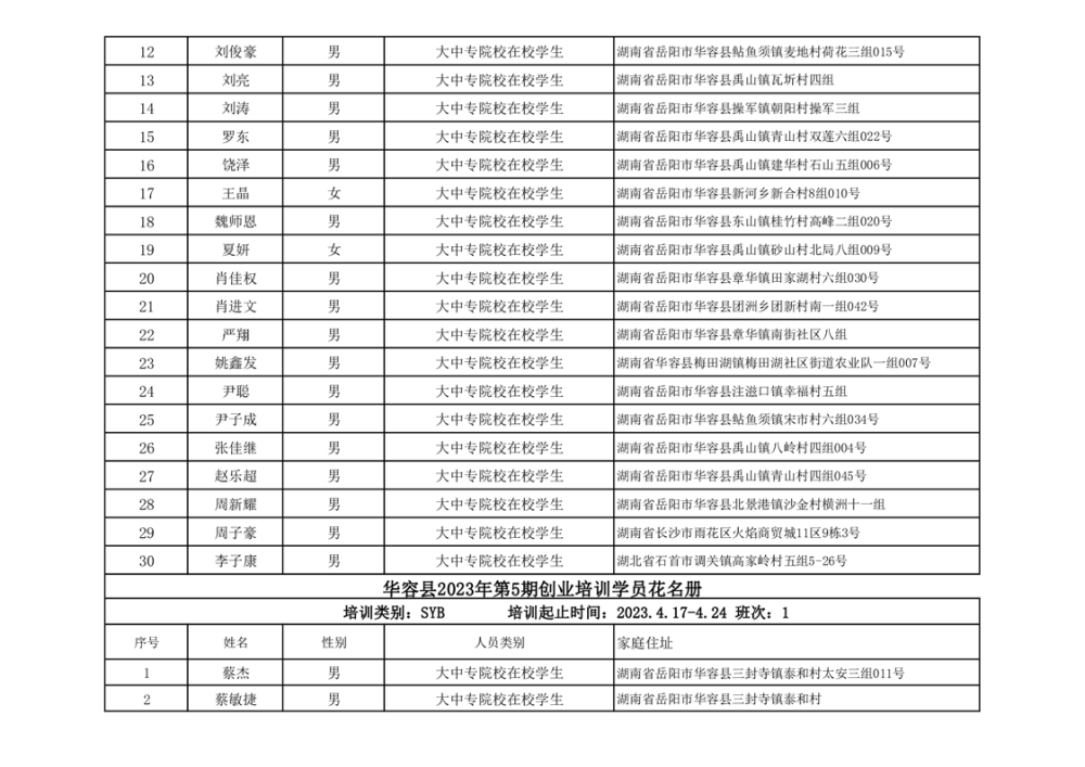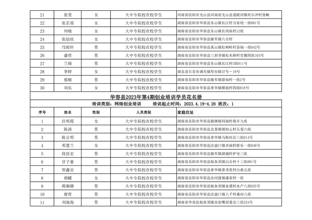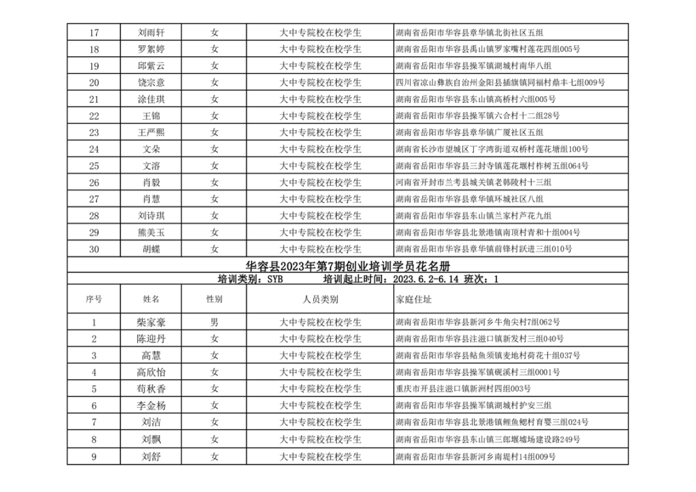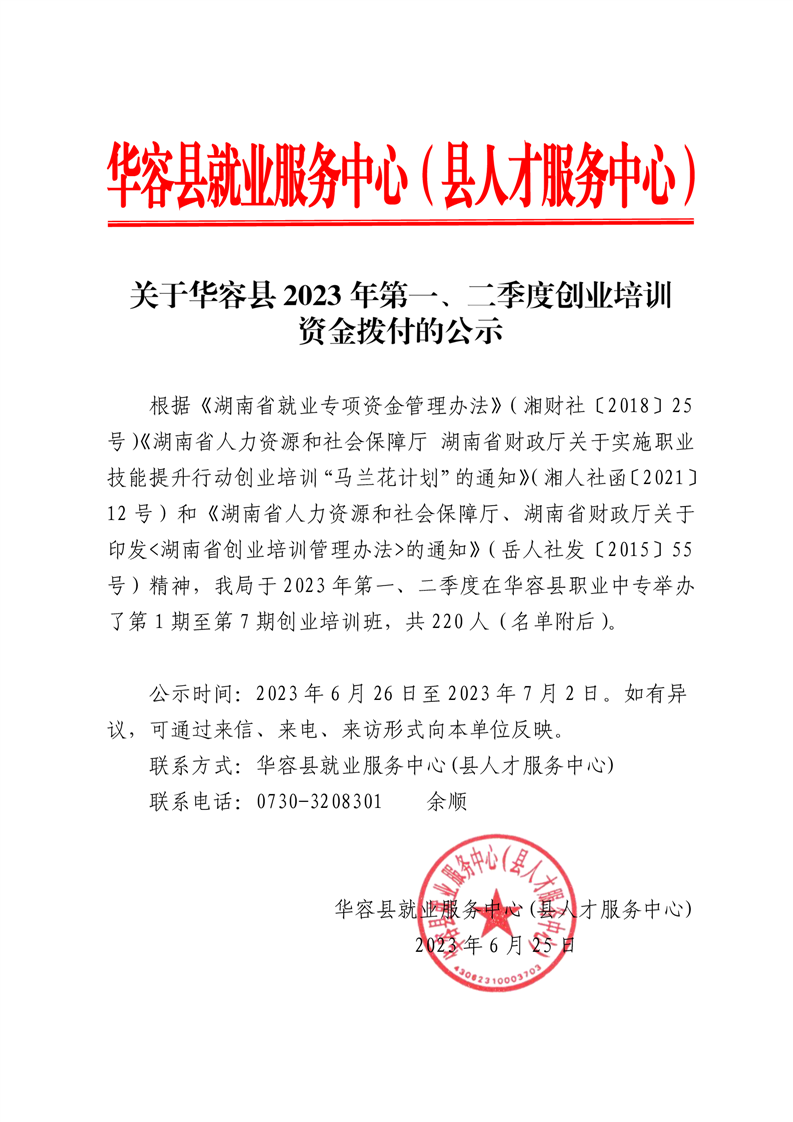 关于华容县2023年第一、二季度创业培训资金拨付的公示