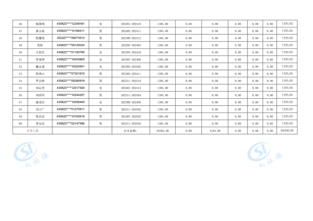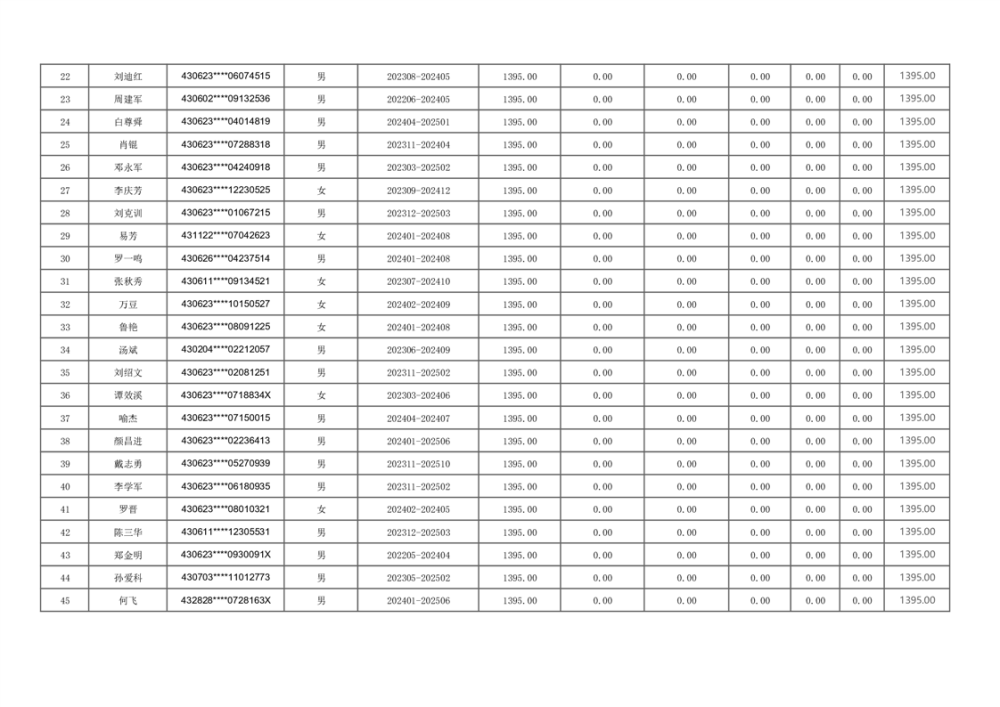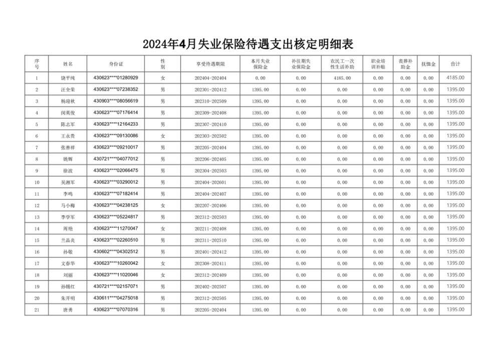2024年4月失业保险待遇支出核定明细表