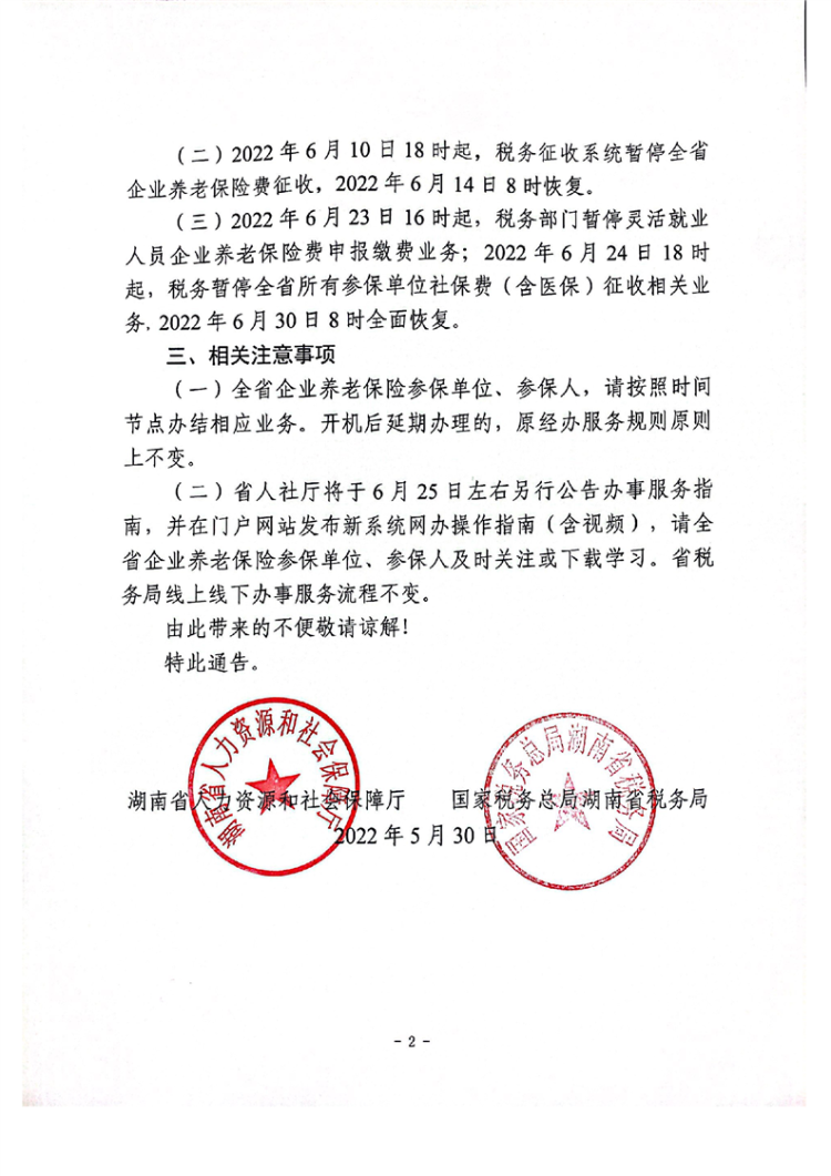 关于暂停企业职工基本养老保险经办、征收服务的通告