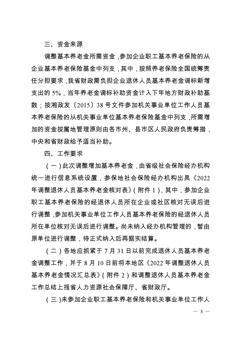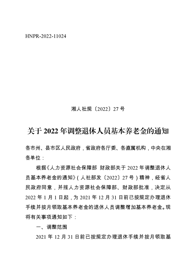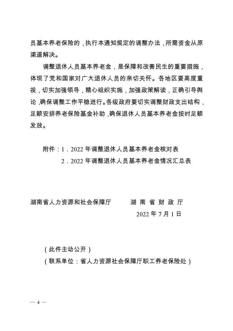 湖南省人力资源和社会保障厅 湖南省财政厅关于2022年调整退休人员基本养老金的通知