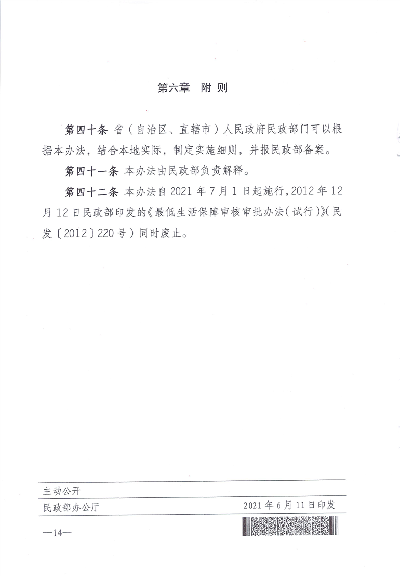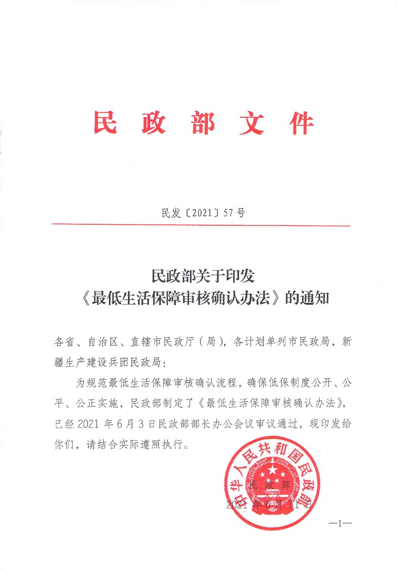 民政部关于印发《最低生活保障审核确认办法》的通知