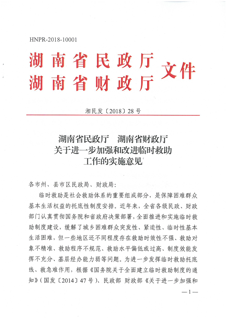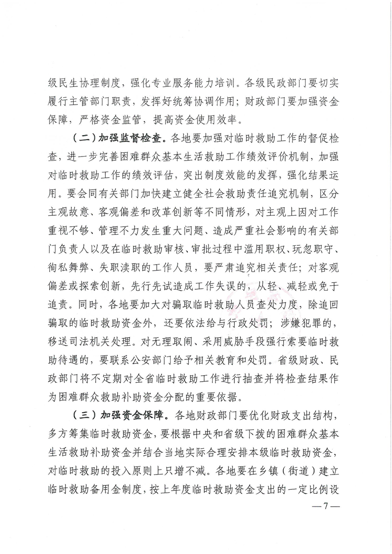 民政厅 财政厅关于进一步加强和改进临时救助工作的意见