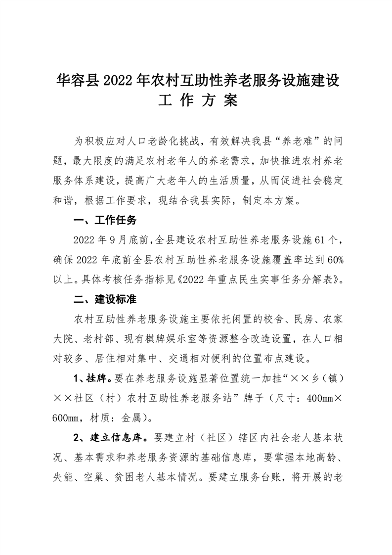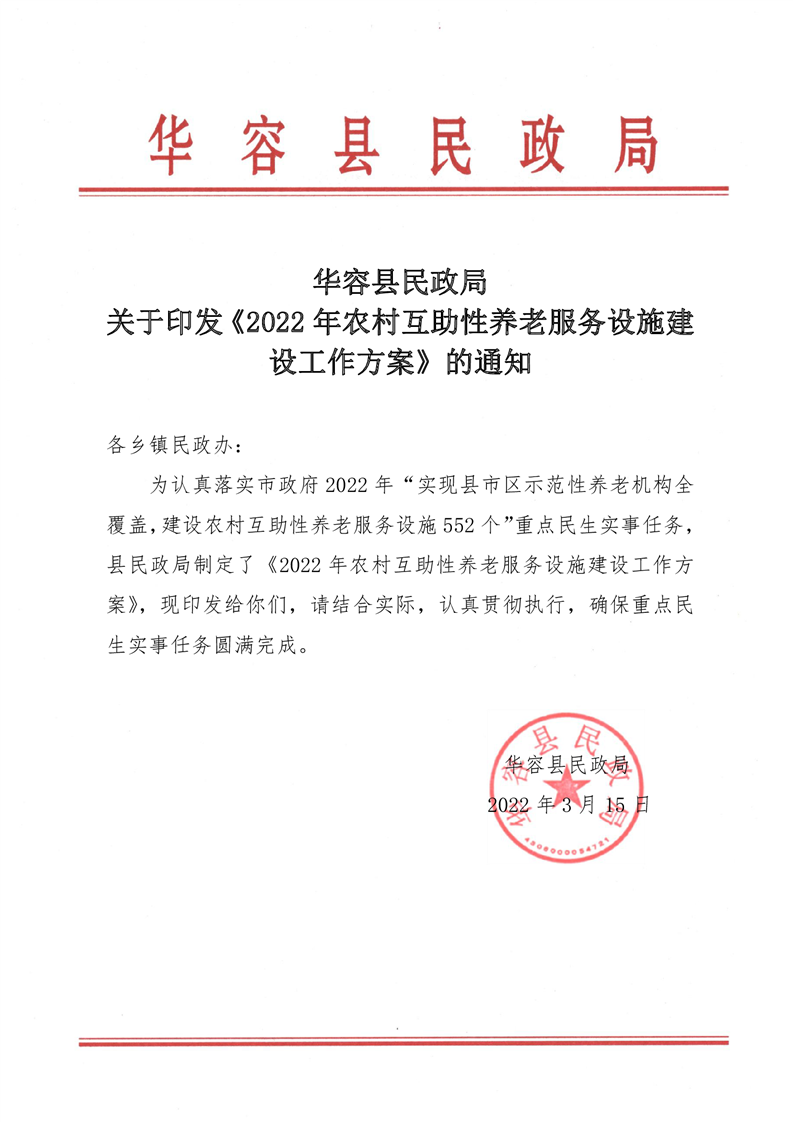 华容县民政局关于印发《2022年农村互助性养老服务设施建设工作方案》的通知