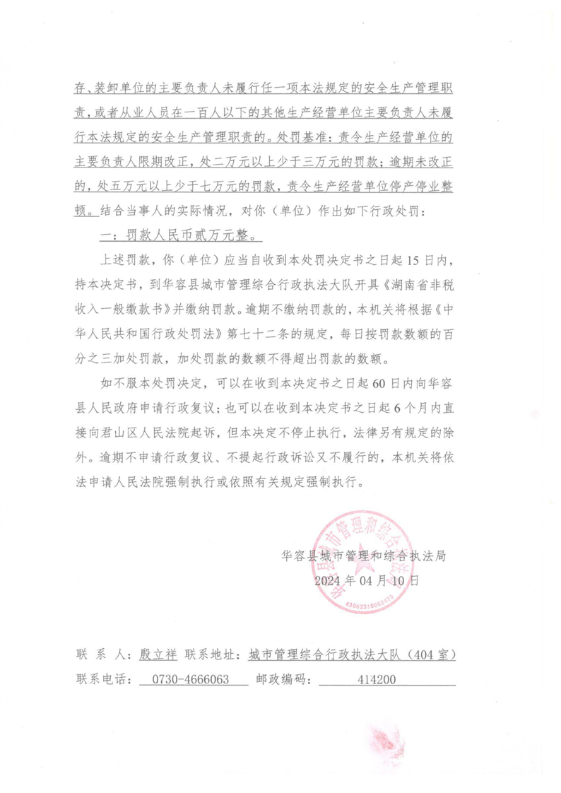 (华城执罚决字[2024]06号)对华容县光大公司法人代表周某违反安全生产法的行政处罚决定公示