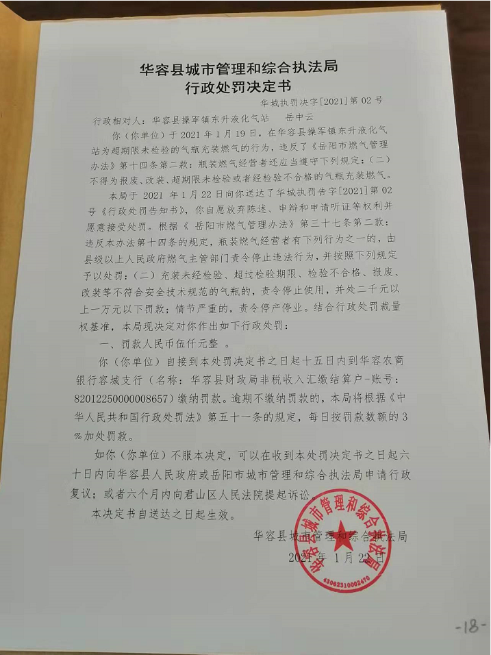行政处罚决定书(华城执罚决定2021第02号)